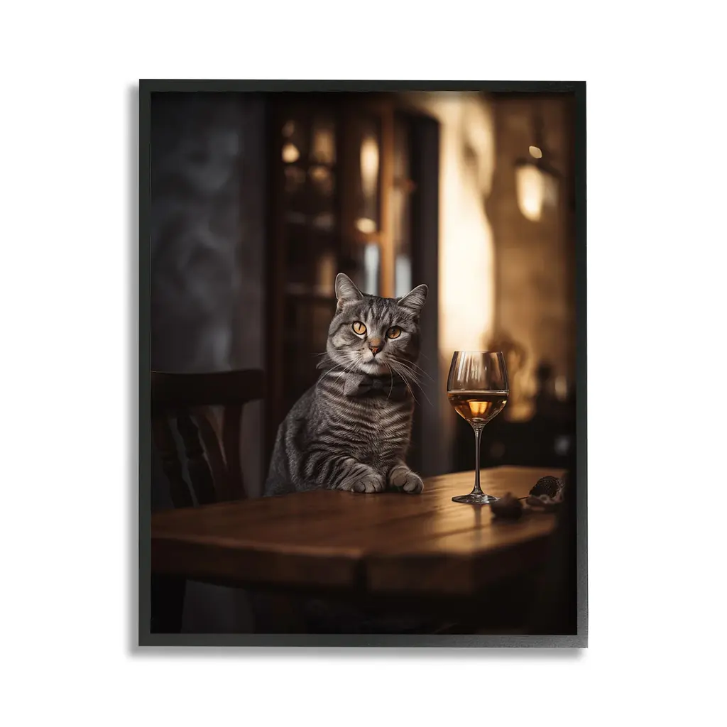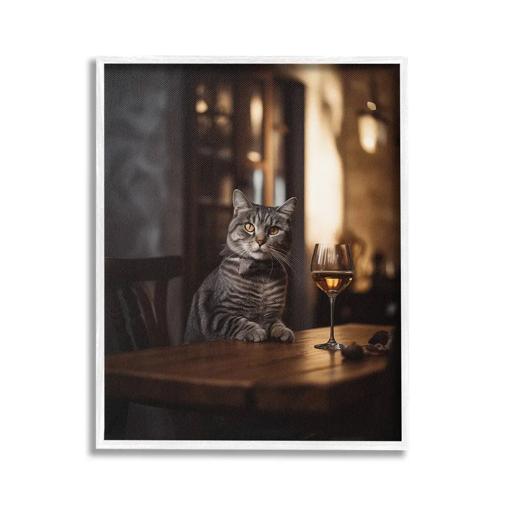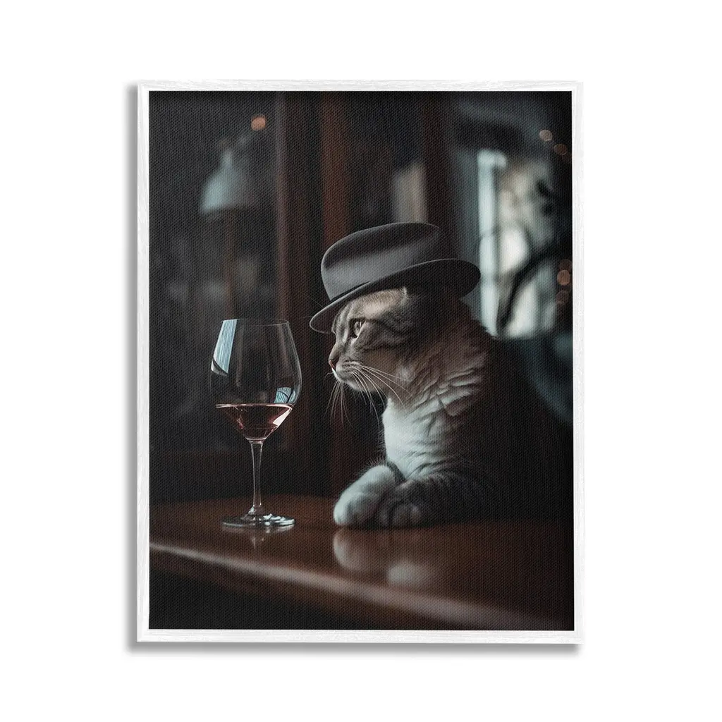 Add dimension to any room with our textured Framed Giclee Artwork. Our framed artwork is securely mounted into a 1.5-inch thick wood grain frame and ready to hang. Frames are available in three alluring styles: black, gray farmhouse and white. In addition, you should check out our oversized options if you want a statement piece. Stupell Wall Art is made in the USA.Features: Dimensions: 11 x 1.5 x 14 FramedFramed Giclee Products are available in the sizes 11"x14", 16"x20" or 24"x30". All Framed Giclee Products have a 1.5" Depth. Wall Art is Ready to Hang with Hardware Free Hanging. No installation required. For Easy Set Up Lean or Layer Artwork on Shelf or Against Wall.Our giclée prints are carefully mounted on a durable MDF backing, and then perfectly finished in a 1.5 inch thick woodgrain frame. Mounted frame colors include black, gray farmhouse and white. Made In USA.Artwork Relates To: Glass, Alcohol, Beverage, Liquor, Wine, Animal, Cat, Mammal, Pet, Bar, HatDesign by Ziwei Li