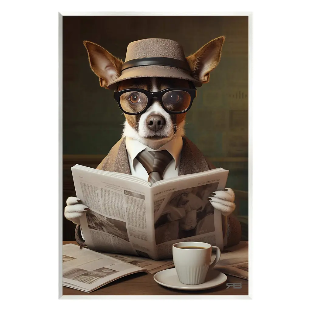 Add dimension to any room with our textured Framed Giclee Artwork. Our framed artwork is securely mounted into a 1.5-inch thick wood grain frame and ready to hang. Frames are available in three alluring styles: black, gray farmhouse and white. In addition, you should check out our oversized options if you want a statement piece. Stupell Wall Art is made in the USA.Features: Dimensions: 11 x 1.5 x 14 FramedFramed Giclee Products are available in the sizes 11"x14", 16"x20" or 24"x30". All Framed Giclee Products have a 1.5" Depth. Wall Art is Ready to Hang with Hardware Free Hanging. No installation required. For Easy Set Up Lean or Layer Artwork on Shelf or Against Wall.Our giclée prints are carefully mounted on a durable MDF backing, and then perfectly finished in a 1.5 inch thick woodgrain frame. Mounted frame colors include black, gray farmhouse and white. Made In USA.Artwork Relates To: Reading, Animal, Canine, Dog, Mammal, Pet, Sunglasses, NewspaperDesign by RB