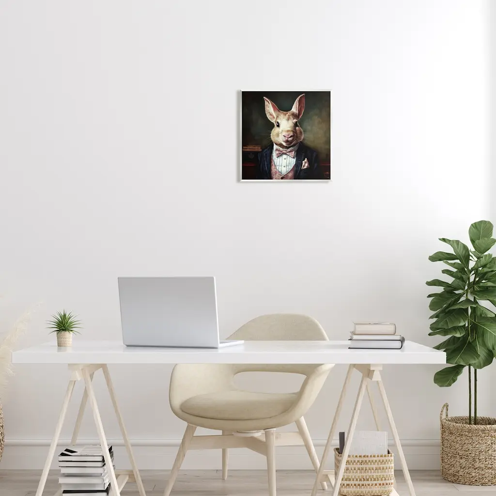 Our wall plaques start as high-quality lithograph prints mounted on durable 0.5-inch thick MDF wood. Each piece is hand finished and comes with a fresh layer of white foil on the sides to give it a crisp, clean look. Plaques arrive ready to hang without installation and come with removable plastic corners to keep them from damage in transit. Wall Art is made in the USA.Features: Dimensions: 12 x 0.5 x 12 InchesWall Art is Ready to Hang with Hardware Free Hanging. No installation required. For Easy Set Up Lean or Layer Artwork on Shelf or Against Wall.All of our wall plaques start off as high quality lithograph prints that are then mounted on durable 0.5 inch thick MDF wood. Each piece is hand finished and comes with a fresh layer of foil on the sides to give it a crisp clean look. Made In USA.Artwork Relates To: Formal Wear, Animal, Wildlife, Fashion, Portrait, RabbitDesign by Lazar Studio