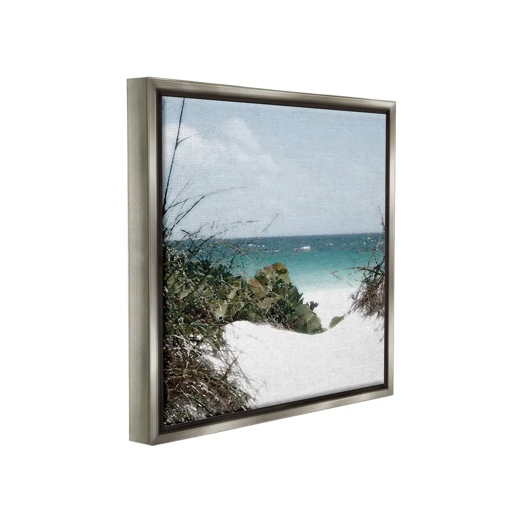 Elevate your home or office to the next level with Stupell Framed Floating Canvas Wall Art. Our premium hand-stretched canvas is mounted securely into a sturdy lightweight frame. The museum-style gap between the wrapped canvas and the box frame gives the illusion of floating artwork. Stupell Wall Art is made in the USA.Features: Dimensions: 18 x 1.7 x 18 Frame, 17 x 1.5 x 17 Canvas ArtFloating Frame Canvas Products are available in sizes 18"x18" and 25"x25". All Floating Frame Canvas Products have a 1.7" Depth.Wall Art is Ready to Hang with Hardware Free Hanging. No Installation required. For Easy Set Up Lean or Layer Artwork on Shelf or Against Wall. Artwork is Permently Fixed into the Frame.Our elevated 1.7" Thick Floating Frame is the perfect complement to our canvas style Wall Art. We use only the highest quality inks in house with industry leading printing solutions. Canvas is hand stretched over a durable wood foundation and then mounted securly into a Modern Box Frame. Made in the USA.Artwork Relates To: Beach, Coast, Nature, Sea, Shoreline, Water, Scenery, Landscape, OceanDesign by Noah Bay