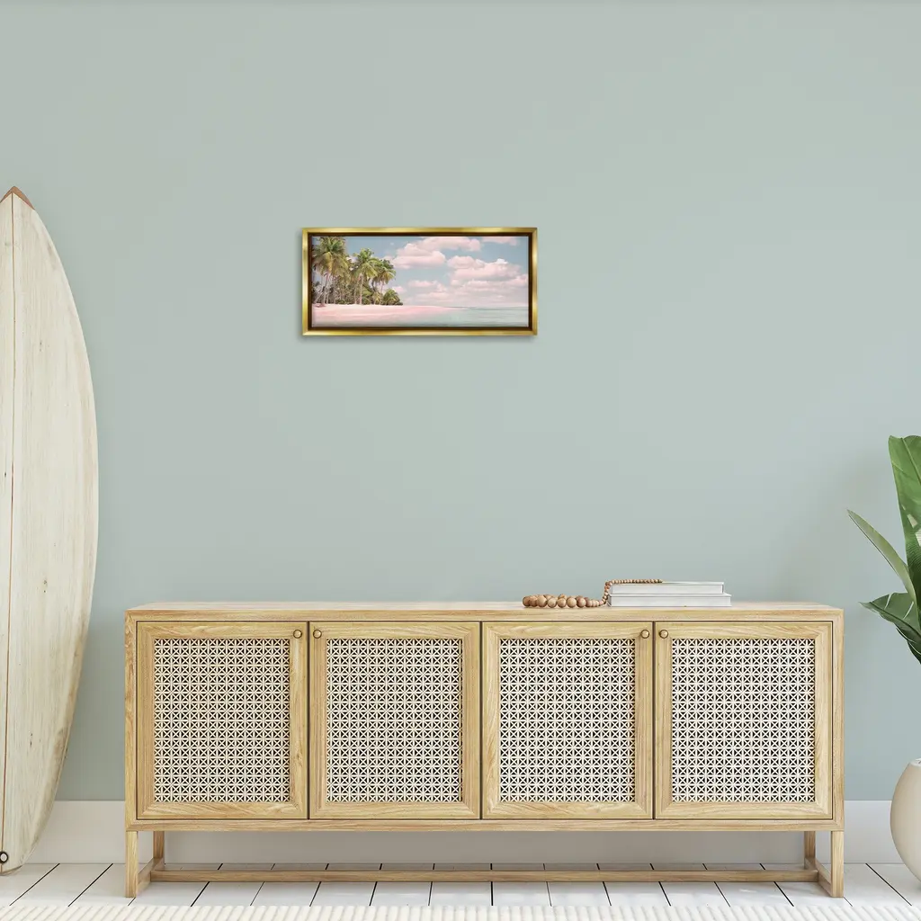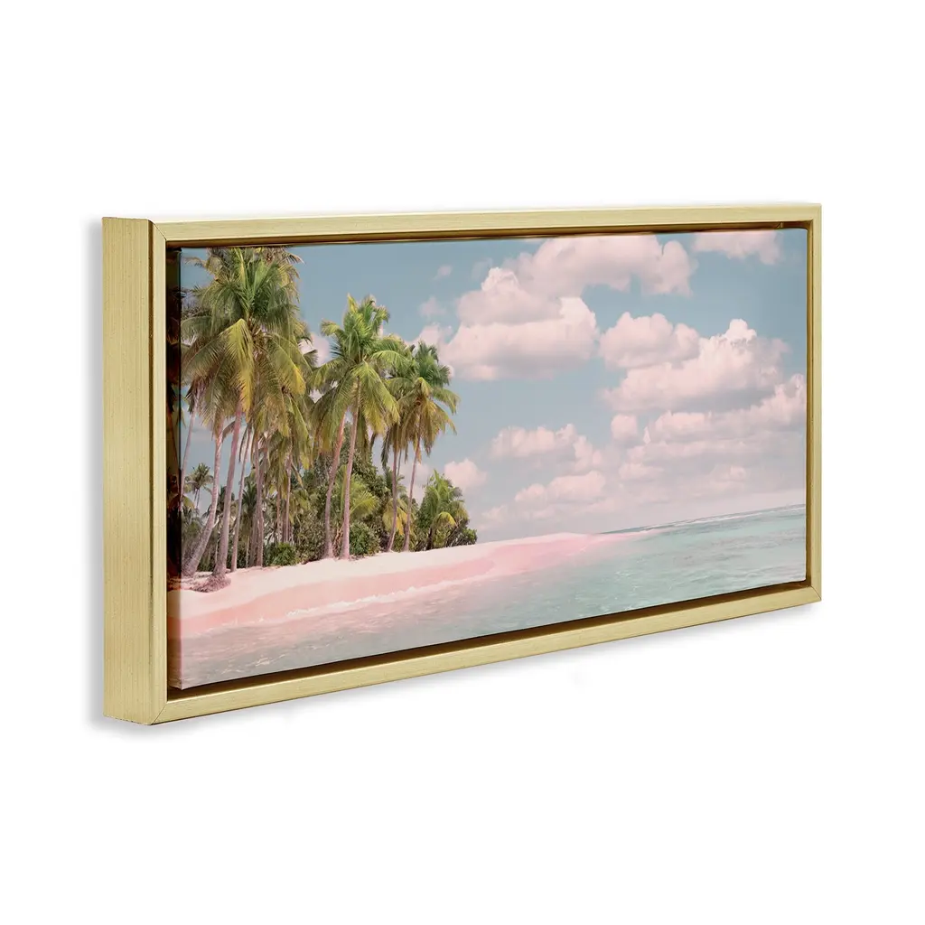 Elevate your home or office to the next level with Stupell Framed Floating Canvas Wall Art. Our premium hand-stretched canvas is mounted securely into a sturdy lightweight frame. The museum-style gap between the wrapped canvas and the box frame gives the illusion of floating artwork. Stupell Wall Art is made in the USA.Features: Dimensions: 25 x 1.7 x 11 Frame, 24 x 1.5 x 10 Canvas ArtFloating Frame Canvas Products are available in sizes 25"x11" and 31"x14". All Floating Frame Canvas Products have a 1.7" Depth.Wall Art is Ready to Hang with Hardware Free Hanging. No Installation required. For Easy Set Up Lean or Layer Artwork on Shelf or Against Wall. Artwork is Permently Fixed into the Frame.Our elevated 1.7" Thick Floating Frame is the perfect complement to our canvas style Wall Art. We use only the highest quality inks in house with industry leading printing solutions. Canvas is hand stretched over a durable wood foundation and then mounted securly into a Modern Box Frame. Made in the USA.Artwork Relates To: Tropical, Nautical, Landscape, Clouds, Beach, Palm TreesDesign by Mike Calascibetta