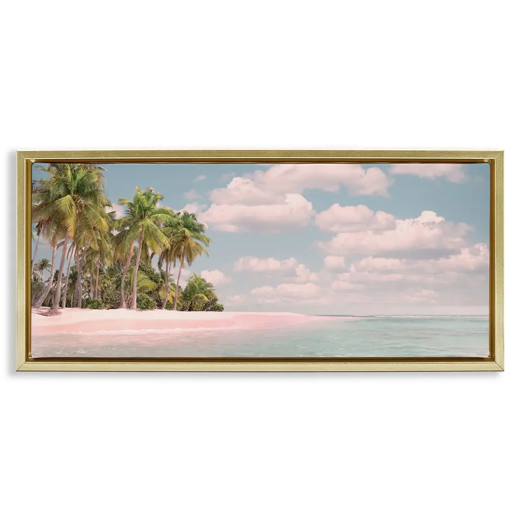 Elevate your home or office to the next level with Stupell Framed Floating Canvas Wall Art. Our premium hand-stretched canvas is mounted securely into a sturdy lightweight frame. The museum-style gap between the wrapped canvas and the box frame gives the illusion of floating artwork. Stupell Wall Art is made in the USA.Features: Dimensions: 25 x 1.7 x 11 Frame, 24 x 1.5 x 10 Canvas ArtFloating Frame Canvas Products are available in sizes 25"x11" and 31"x14". All Floating Frame Canvas Products have a 1.7" Depth.Wall Art is Ready to Hang with Hardware Free Hanging. No Installation required. For Easy Set Up Lean or Layer Artwork on Shelf or Against Wall. Artwork is Permently Fixed into the Frame.Our elevated 1.7" Thick Floating Frame is the perfect complement to our canvas style Wall Art. We use only the highest quality inks in house with industry leading printing solutions. Canvas is hand stretched over a durable wood foundation and then mounted securly into a Modern Box Frame. Made in the USA.Artwork Relates To: Tropical, Nautical, Landscape, Clouds, Beach, Palm TreesDesign by Mike Calascibetta