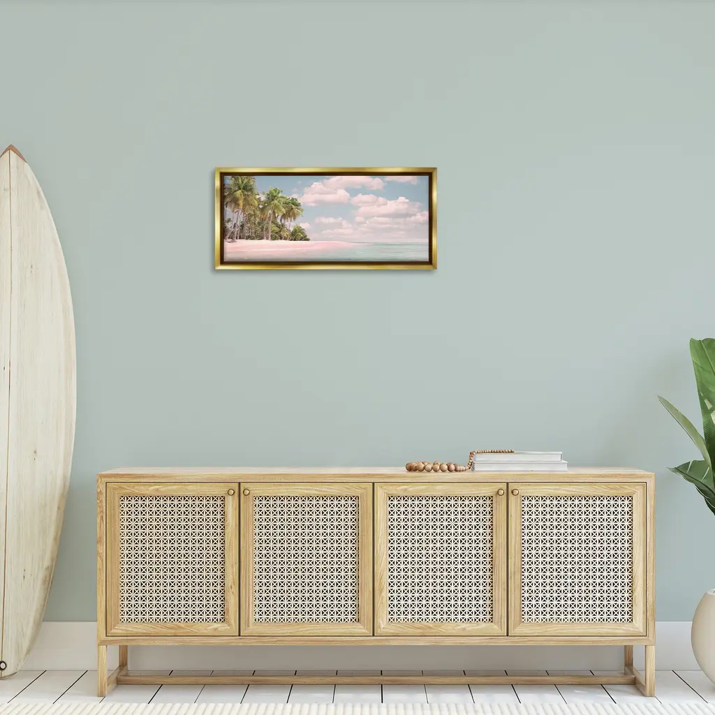 Elevate your home or office to the next level with Stupell Framed Floating Canvas Wall Art. Our premium hand-stretched canvas is mounted securely into a sturdy lightweight frame. The museum-style gap between the wrapped canvas and the box frame gives the illusion of floating artwork. Stupell Wall Art is made in the USA.Features: Dimensions: 25 x 1.7 x 11 Frame, 24 x 1.5 x 10 Canvas ArtFloating Frame Canvas Products are available in sizes 25"x11" and 31"x14". All Floating Frame Canvas Products have a 1.7" Depth.Wall Art is Ready to Hang with Hardware Free Hanging. No Installation required. For Easy Set Up Lean or Layer Artwork on Shelf or Against Wall. Artwork is Permently Fixed into the Frame.Our elevated 1.7" Thick Floating Frame is the perfect complement to our canvas style Wall Art. We use only the highest quality inks in house with industry leading printing solutions. Canvas is hand stretched over a durable wood foundation and then mounted securly into a Modern Box Frame. Made in the USA.Artwork Relates To: Tropical, Nautical, Landscape, Clouds, Beach, Palm TreesDesign by Mike Calascibetta