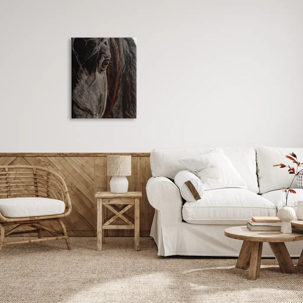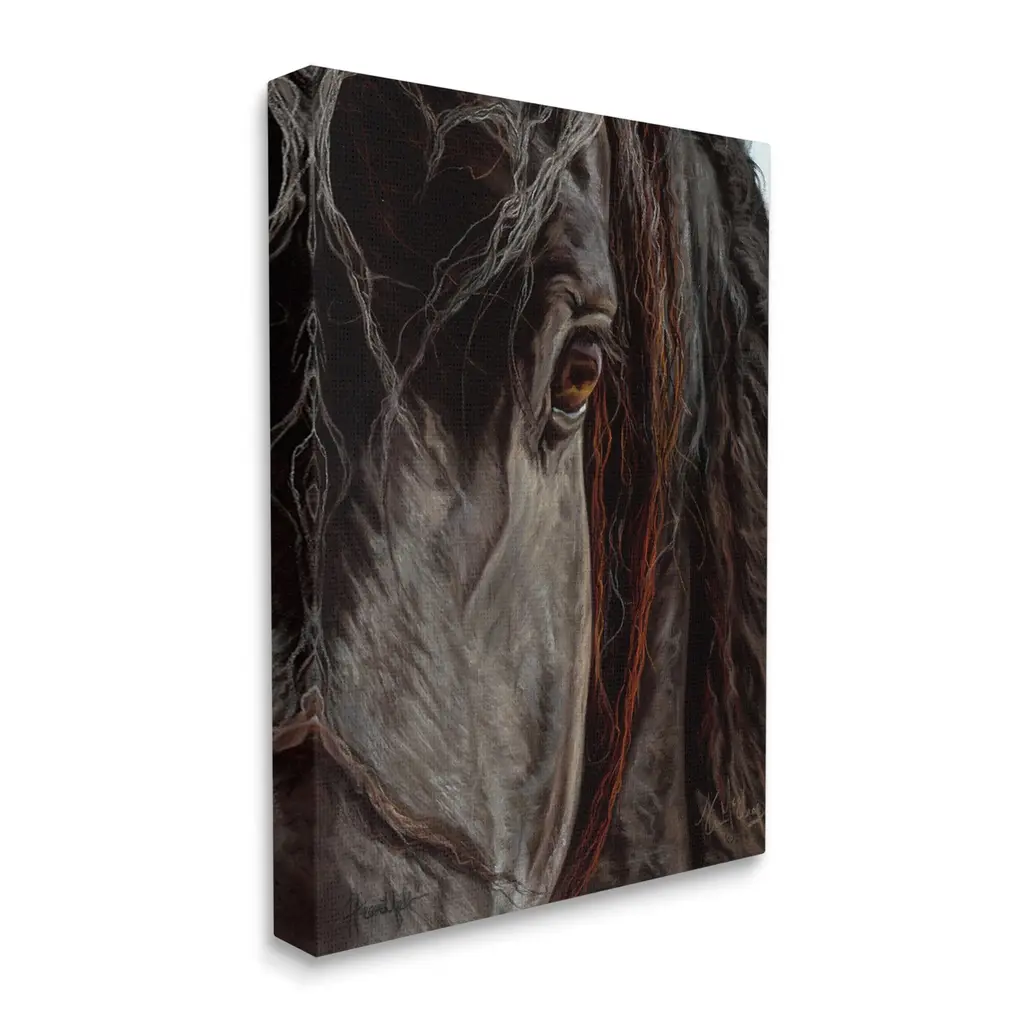 We create our stretched canvas to the highest standards. Using only the highest quality inks and canvas on Mimaki printers, we hand-cut and stretch each piece over a 1.5-inch thick wooden frame for hanging. As a result, the art comes ready to hang on the sturdy ledge with no installation required. Stupell Wall Art is made in the USA.Features: Dimensions: 16 x 1.5 x 20 InchesStretched Canvas Sizes Include Standard: 16 x 1.5 x 20 Large: 20 x 1.5 x 30 X-Large: 30 x 1.5 x 40 Oversized: 36 x 1.5 x 48Wall Art is Ready to Hang with Hardware Free Hanging. No installation required. For Easy Set Up Lean or Layer Artwork on Shelf or Against Wall.Our stretched canvas is created with the highest standards. We use only the highest quality inks and canvas on our in house Mimaki printers, and then hand cut and stretch each piece over a 1.5 inch thick wooden frame for hanging. Made In USA.Artwork Relates To: Animal, Horse, Mammal, Stallion, Colt Horse, PaintingDesign by Spirit Horse