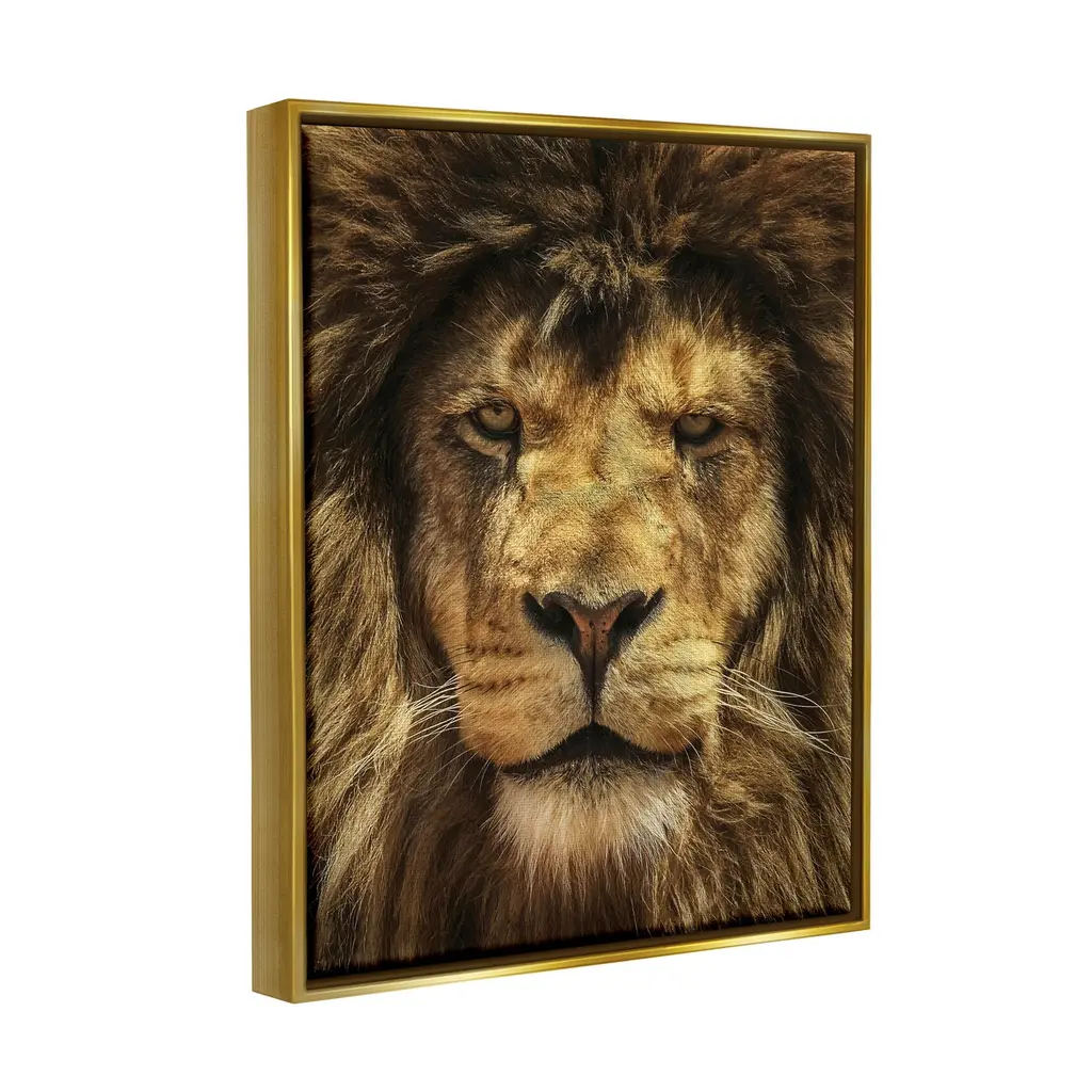 Elevate your home or office to the next level with Stupell Framed Floating Canvas Wall Art. Our premium hand stretched canvas is mounted securely into a sturdy lightweight frame. The museum style gap between wrapped canvas and box frame gives the illusion of floating artwork.Features:Dimensions: 17 x 1.7 x 21 Frame, 16 x 1.5 x 20 Canvas ArtFloating Frame Sizes IncludeStandard: 17 x 1.7 x 21Oversized: 25 x 1.7 x 31Wall Art is Ready to Hang - No Installation or Hardware Needed. For Easy Set Up Lean or Layer Artwork on Shelf or Against Wall.Our elevated 1.7" Thick Floating Frame is the perfect complement to our canvas style Wall Art. We use only the highest quality inks in house with industry leading printing solutions. Canvas is hand stretched over a durable wood foundation and then mounted securely into a Modern Box Frame. Made in the USA.Artwork Relates To: Lion; Wildlife; Animal; Mammal, Portrait, PhotographyDesign by Carrie Ann Grippo-Pike