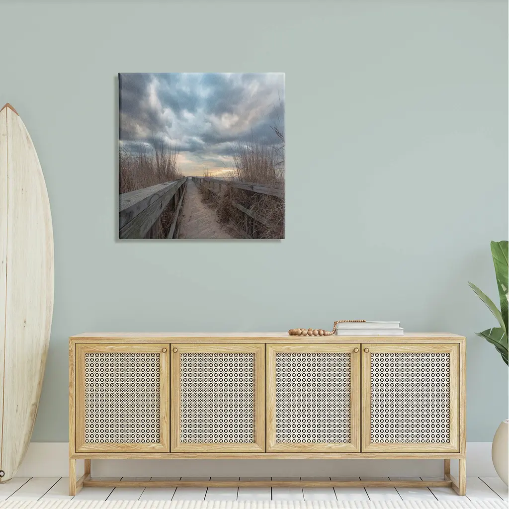 Proudly made in the USA, Our stretched canvas is created with the highest standards. We use only the highest quality inks and canvas on our in house Mimaki printers, and then hand cut and stretch each piece over a 1.5 inch thick wooden frame for hanging. The art comes ready to hang with no installation required.Features: Dimensions: 17 x 1.5 x 17 InchesStretched Canvas Sizes Include Standard: 17 x 1.5 x 17 Large: 24 x 1.5 x 24 X-Large: 30 x 1.5 x 30 Oversized: 36 x 1.5 x 36Wall Art is Ready to Hang - No Installation or Hardware Needed. For Easy Set Up Lean or Layer Artwork on Shelf or Against Wall.Our stretched canvas is created with the highest standards. We use only the highest quality inks and canvas on our in house Mimaki printers, and then hand cut and stretch each piece over a 1.5 inch thick wooden frame for hanging. Made In USA.Artwork Relates To: Boardwalk, Path, Reed, Plant, Waterfront, Water, Walkway, Sky, Scenery, Cloud, Weather, Coastal, SeasideDesign by Pat DeLuca