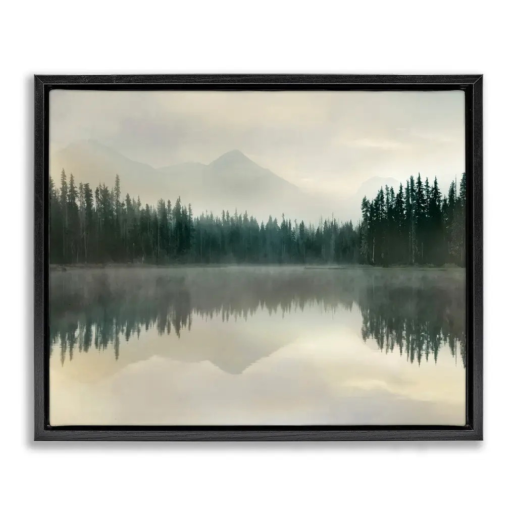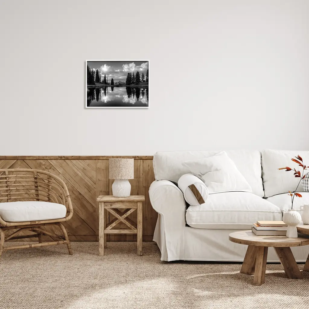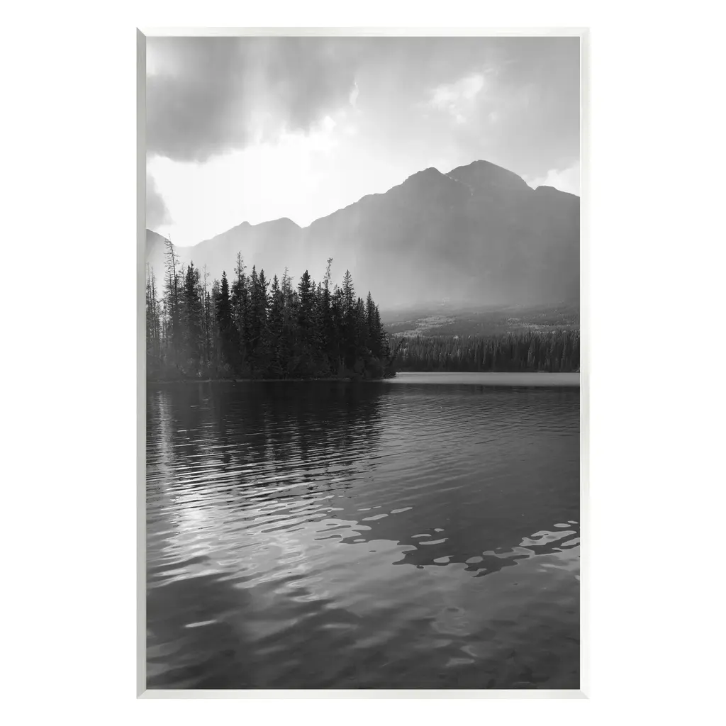 Stupell Cloudy Lake Mountain Reflection Tall Pines Photography Landscape Framed Wall Art - 20 X 16 - White
