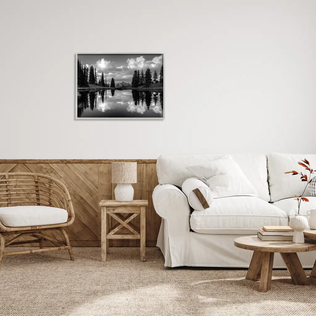 Stupell Cloudy Lake Mountain Reflection Tall Pines Photography Landscape Framed Wall Art - 30 X 24 - Grey