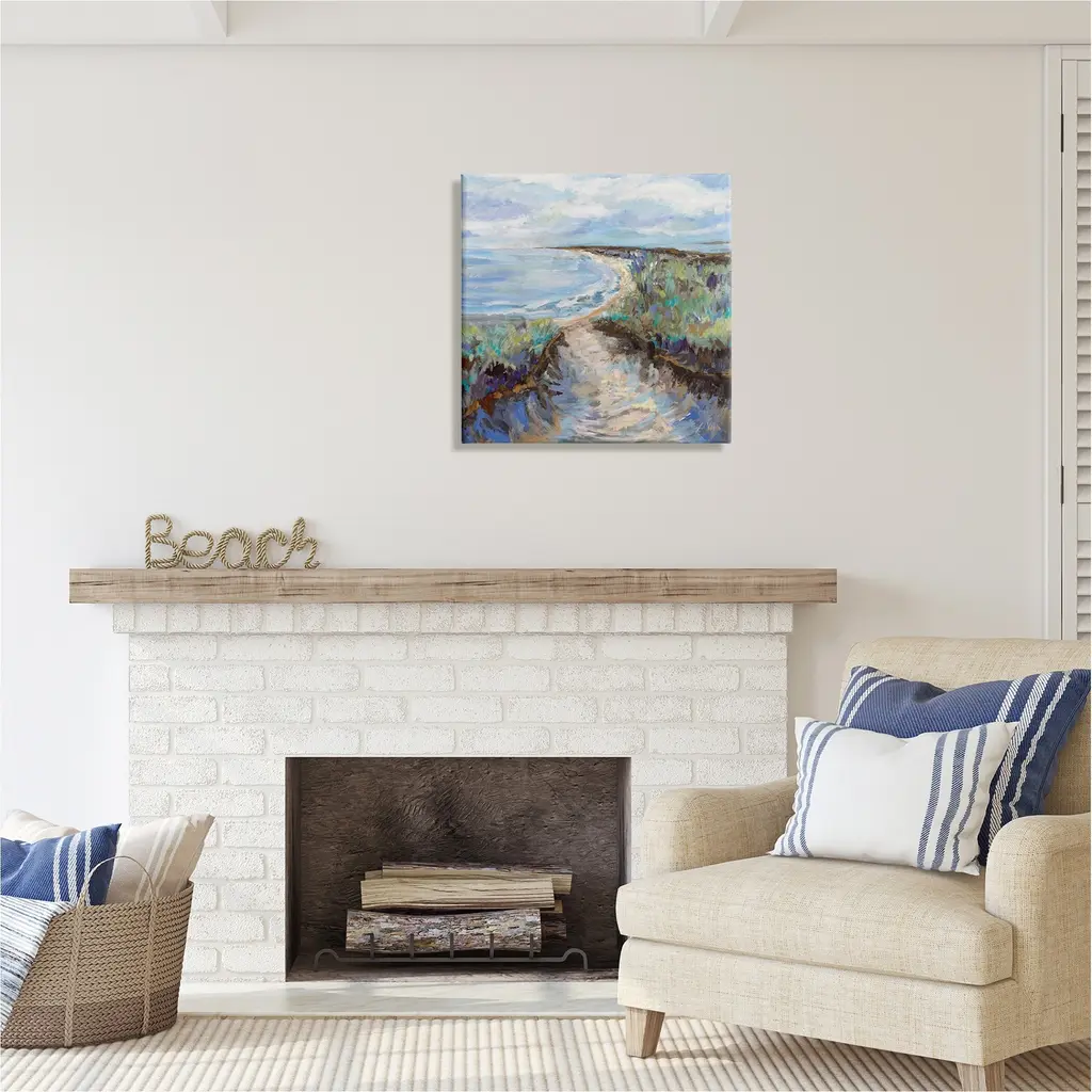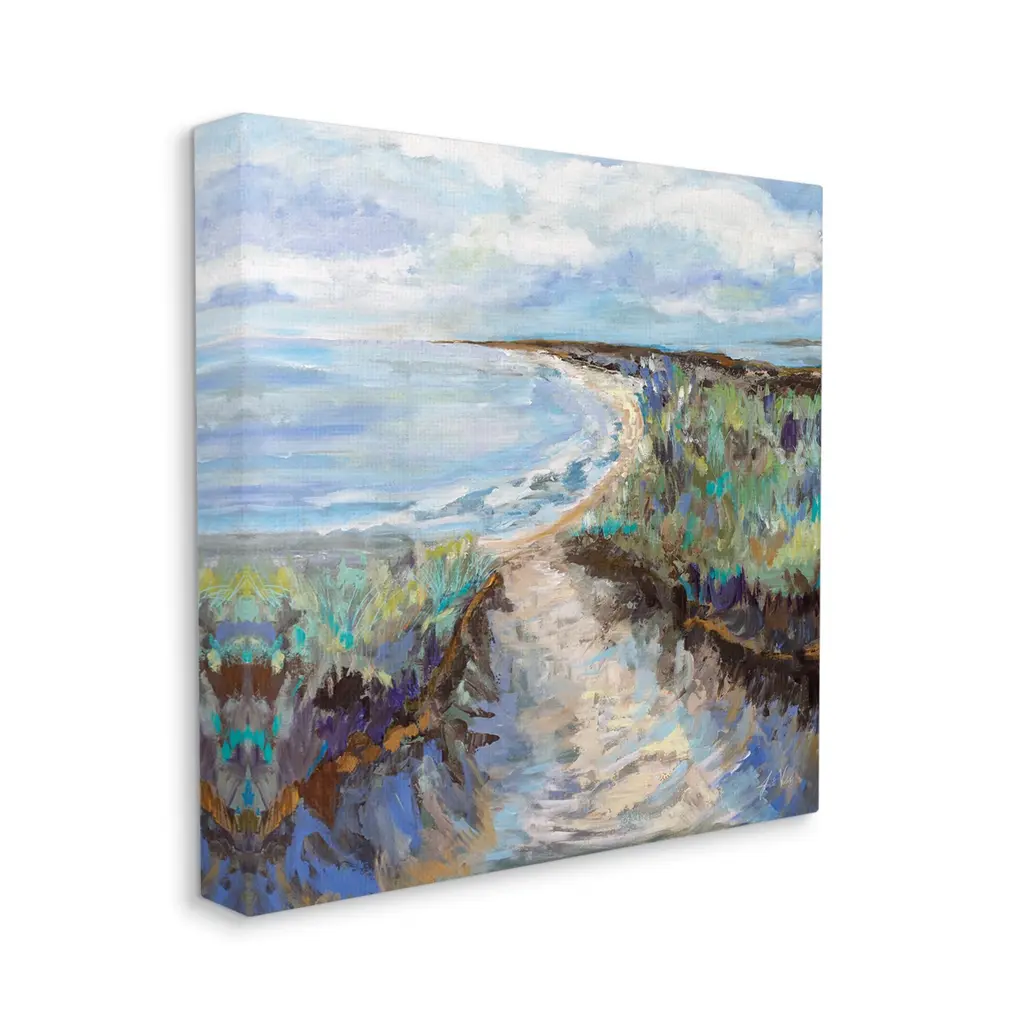 We create our stretched canvas to the highest standards. Using only the highest quality inks and canvas on Mimaki printers, we hand-cut and stretch each piece over a 1.5-inch thick wooden frame for hanging. As a result, the art comes ready to hang on the sturdy ledge with no installation required. Stupell Wall Art is made in the USA.Features: Dimensions: 17 x 1.5 x 17 InchesStretched Canvas Sizes Include Standard: 17 x 1.5 x 17 Large: 24 x 1.5 x 24 X-Large: 30 x 1.5 x 30 Oversized: 36 x 1.5 x 36Wall Art is Ready to Hang with Hardware Free Hanging. No installation required. For Easy Set Up Lean or Layer Artwork on Shelf or Against Wall.Our stretched canvas is created with the highest standards. We use only the highest quality inks and canvas on our in house Mimaki printers, and then hand cut and stretch each piece over a 1.5 inch thick wooden frame for hanging. Made In USA.Artwork Relates To: Painting, Nature, Sea, Water, Promontory, Shoreline, Coast, Path, LandscapeDesign by Jeanette Vertentes