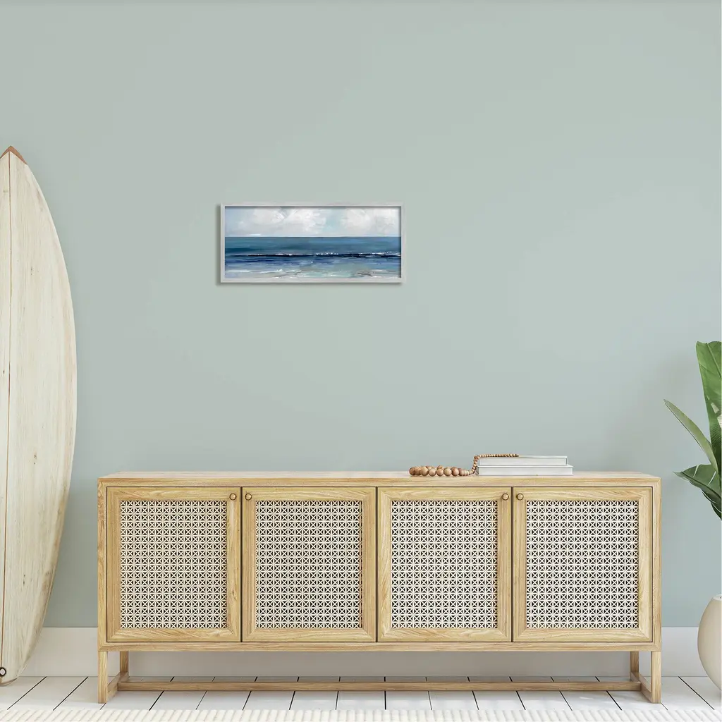 Stupell Cloudy Ocean Waves Horizon Framed Giclee Art, Design By Sally Swatland - 24 X 10 - Grey