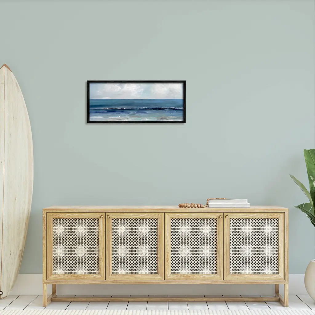 Our Framed Giclee Wall Art adds a touch of class to any space in your home or office. Frames are available in three alluring styles: black, gray farmhouse and white. Our textured artwork will add more depth and dimension to any space. Each piece is mounted with a 1.5 inch thick wood grain frame that is ready to hang! Looking for a statement piece? We have oversized artwork available.Features:Dimensions: 24 x 1.5 x 10 FramedFramed Giclee Sizes IncludeStandard: 24 x 1.5 x 10Oversized: 30 x 1.5 x 13Wall Art is Ready to Hang - No Installation or Hardware Needed. For Easy Set Up Lean or Layer Artwork on Shelf or Against Wall.Our giclee prints are carefully mounted on a durable MDF backing, and then perfectly finished in a 1.5 inch thick woodgrain frame. Mounted frame colors include black, gray farmhouse and white. Made In USA.Artwork Relates To: Painting; Sea; Nature; Outdoors; Water; Sky; Coast; Scenery; Cloud; Landscape; Horizon; Sea WavesDesign by Sally Swatland