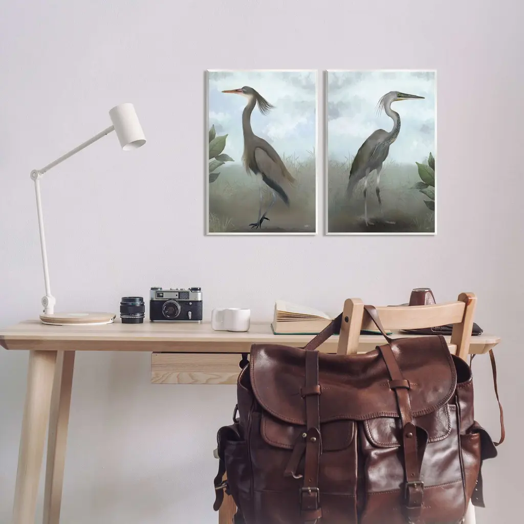 Fill any space with Stupell Wall Art Sets. Our wall plaques start as high-quality lithograph prints mounted on durable 0.5-inch thick MDF wood. Each piece is hand finished and comes with a fresh layer of white foil on the sides to give it a crisp, clean look. Plaques arrive ready to hang without installation and come with removable plastic corners to keep them from damage in transit. Wall Art is made in the USA.Features: Dimensions: 2 Piece Set, Each Panel is 10 x 0.5 x 15 InchesWall Plaque Set Sizes Include Standard: 2pc, Each is 10 x 0.5 x 15 Oversized: 2pc, Each is 13 x 0.5 x 19Wall Art is Ready to Hang with Hardware Free Hanging. No installation required. For Easy Set Up Lean or Layer Artwork on Shelf or Against Wall.All of our wall plaques start off as high quality lithograph prints that are then mounted on durable 0.5 inch thick MDF wood. Each piece is hand finished and comes with a fresh layer of foil on the sides to give it a crisp clean look. Made In USA.Artwork Relates To: Animal, Bird, Waterfowl, Crane Bird, Stork, Heron, Egret, NatureDesign by Elizabeth Medley
