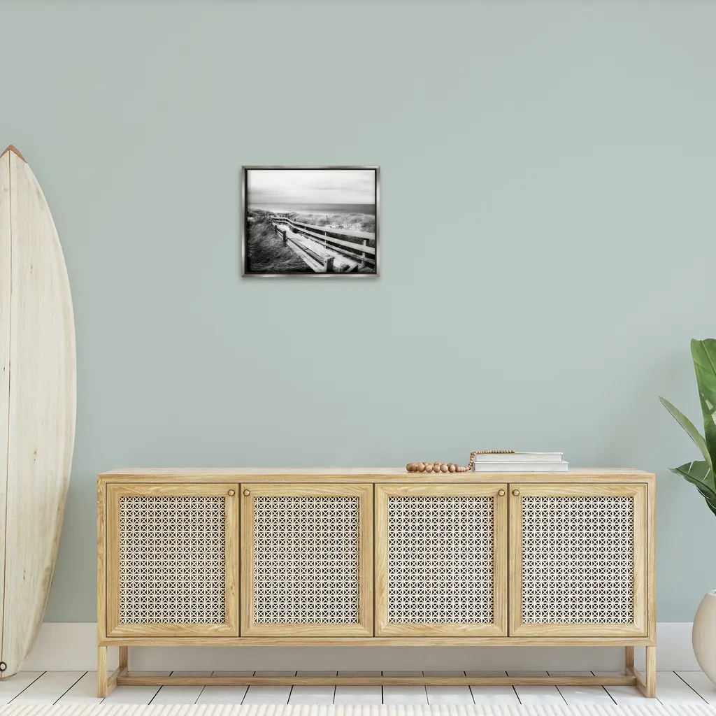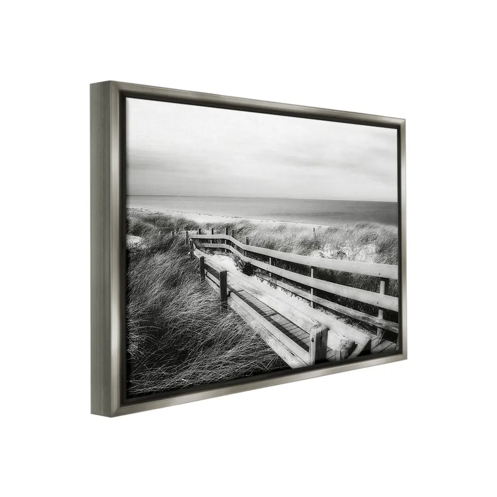 Elevate your home or office to the next level with Stupell Framed Floating Canvas Wall Art. Our premium hand-stretched canvas is mounted securely into a sturdy lightweight frame. The museum-style gap between the wrapped canvas and the box frame gives the illusion of floating artwork. Stupell Wall Art is made in the USA.Features: Dimensions: 21 x 1.7 x 17 Frame, 20 x 1.5 x 16 Canvas ArtFloating Frame Canvas Products are available in sizes 21"x17" and 31"x25". All Floating Frame Canvas Products have a 1.7" Depth.Wall Art is Ready to Hang with Hardware Free Hanging. No Installation required. For Easy Set Up Lean or Layer Artwork on Shelf or Against Wall. Artwork is Permently Fixed into the Frame.Our elevated 1.7" Thick Floating Frame is the perfect complement to our canvas style Wall Art. We use only the highest quality inks in house with industry leading printing solutions. Canvas is hand stretched over a durable wood foundation and then mounted securly into a Modern Box Frame. Made in the USA.Artwork Relates To: Beach, Coast, Sea, Shoreline, Nautical, Shore, Boardwalk, Fence, Monochrome, PhotographyDesign by GraffiTee Studios