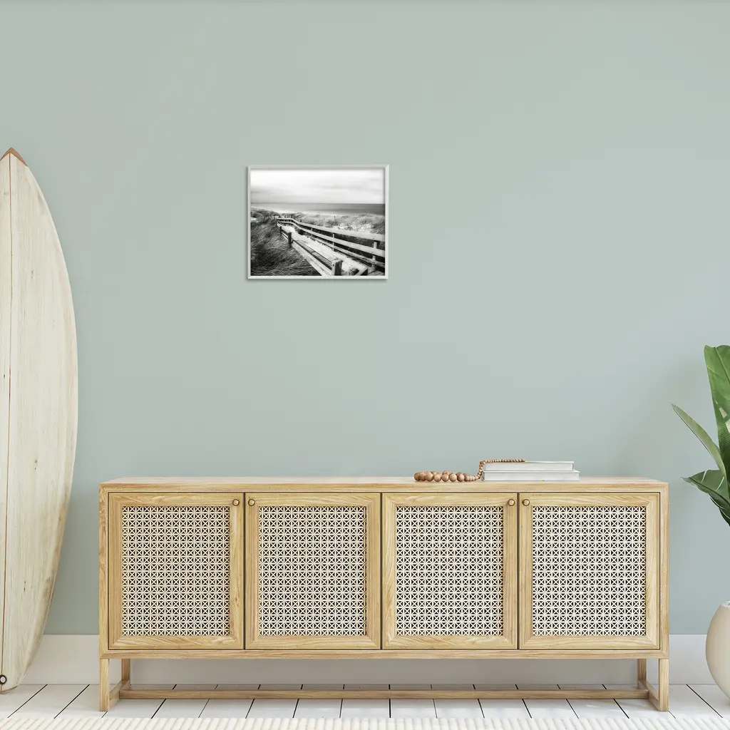 Add dimension to any room with our textured Framed Giclee Artwork. Our framed artwork is securely mounted into a 1.5-inch thick wood grain frame and ready to hang. Frames are available in three alluring styles: black, gray farmhouse and white. In addition, you should check out our oversized options if you want a statement piece. Stupell Wall Art is made in the USA.Features: Dimensions: 14 x 1.5 x 11 FramedFramed Giclee Products are available in the sizes 14"x11", 20"x16" or 30"x24". All Framed Giclee Products have a 1.5" Depth. Wall Art is Ready to Hang with Hardware Free Hanging. No installation required. For Easy Set Up Lean or Layer Artwork on Shelf or Against Wall.Our giclée prints are carefully mounted on a durable MDF backing, and then perfectly finished in a 1.5 inch thick woodgrain frame. Mounted frame colors include black, gray farmhouse and white. Made In USA.Artwork Relates To: Beach, Coast, Sea, Shoreline, Nautical, Shore, Boardwalk, Fence, Monochrome, PhotographyDesign by GraffiTee Studios