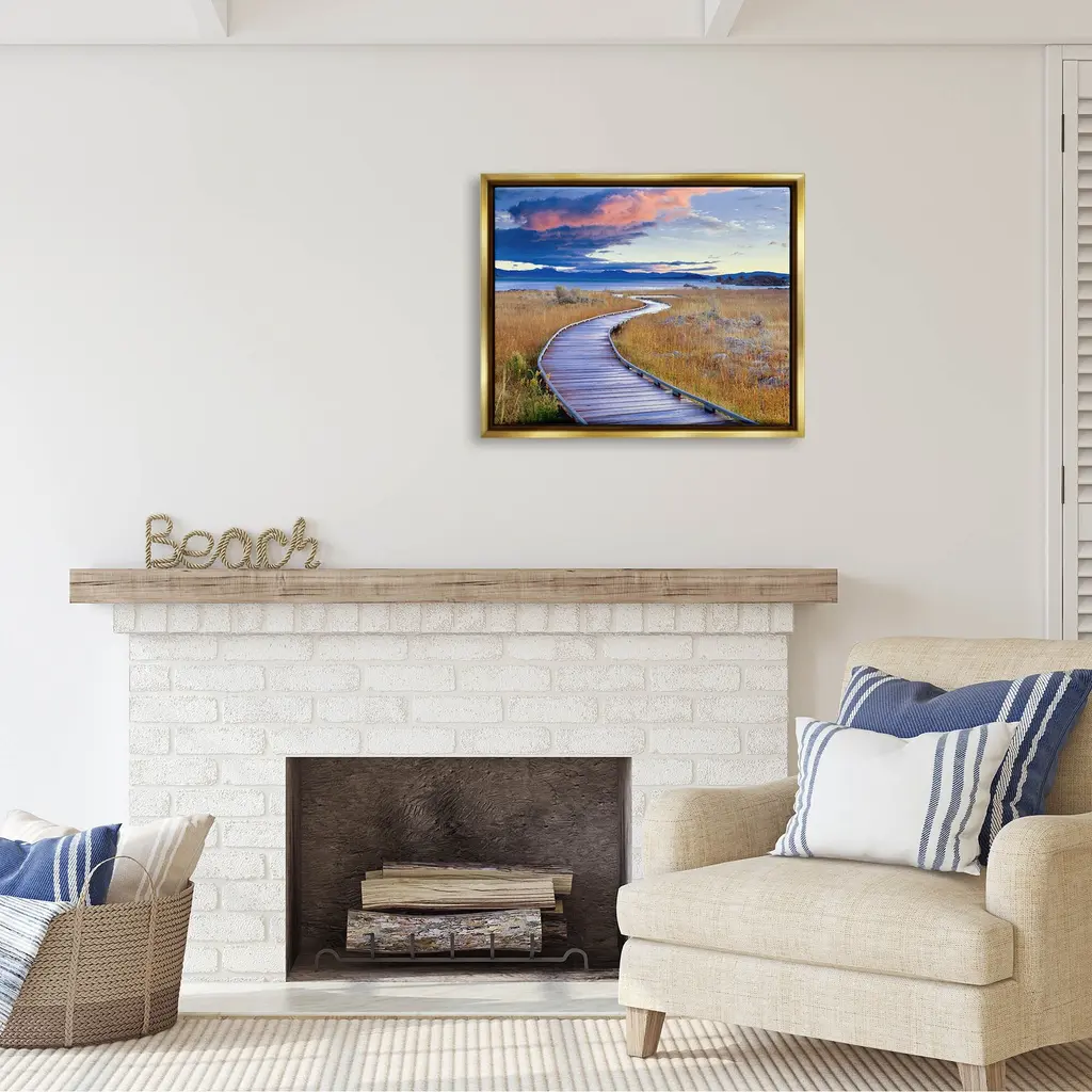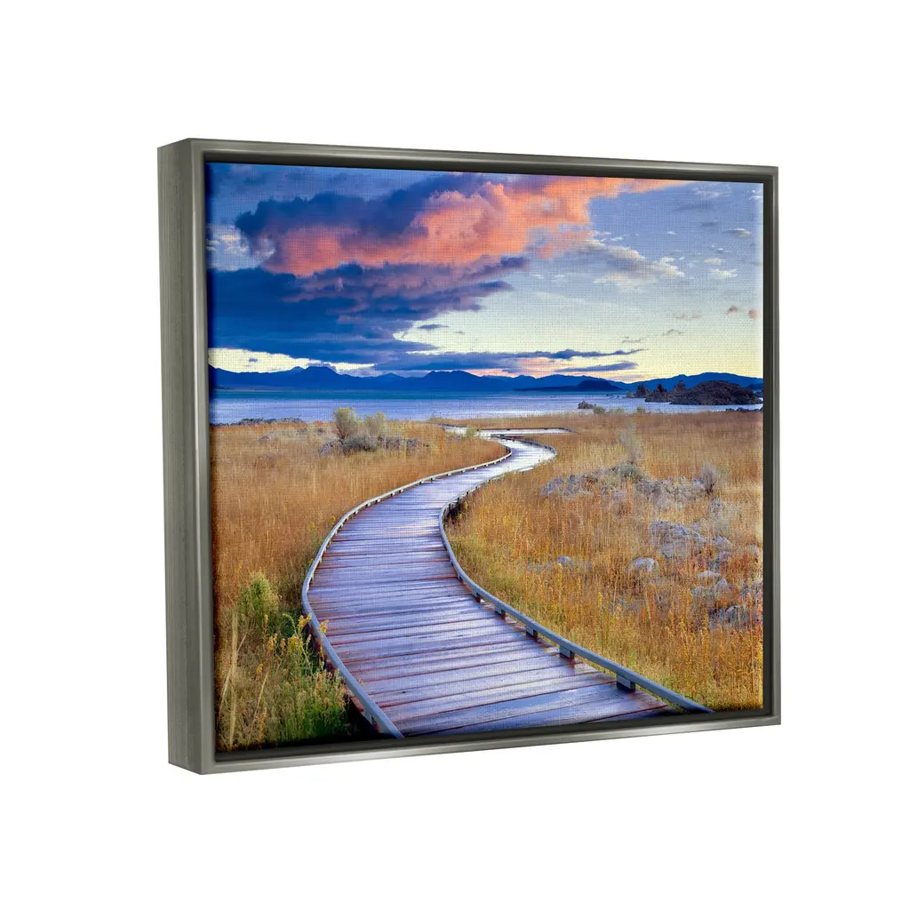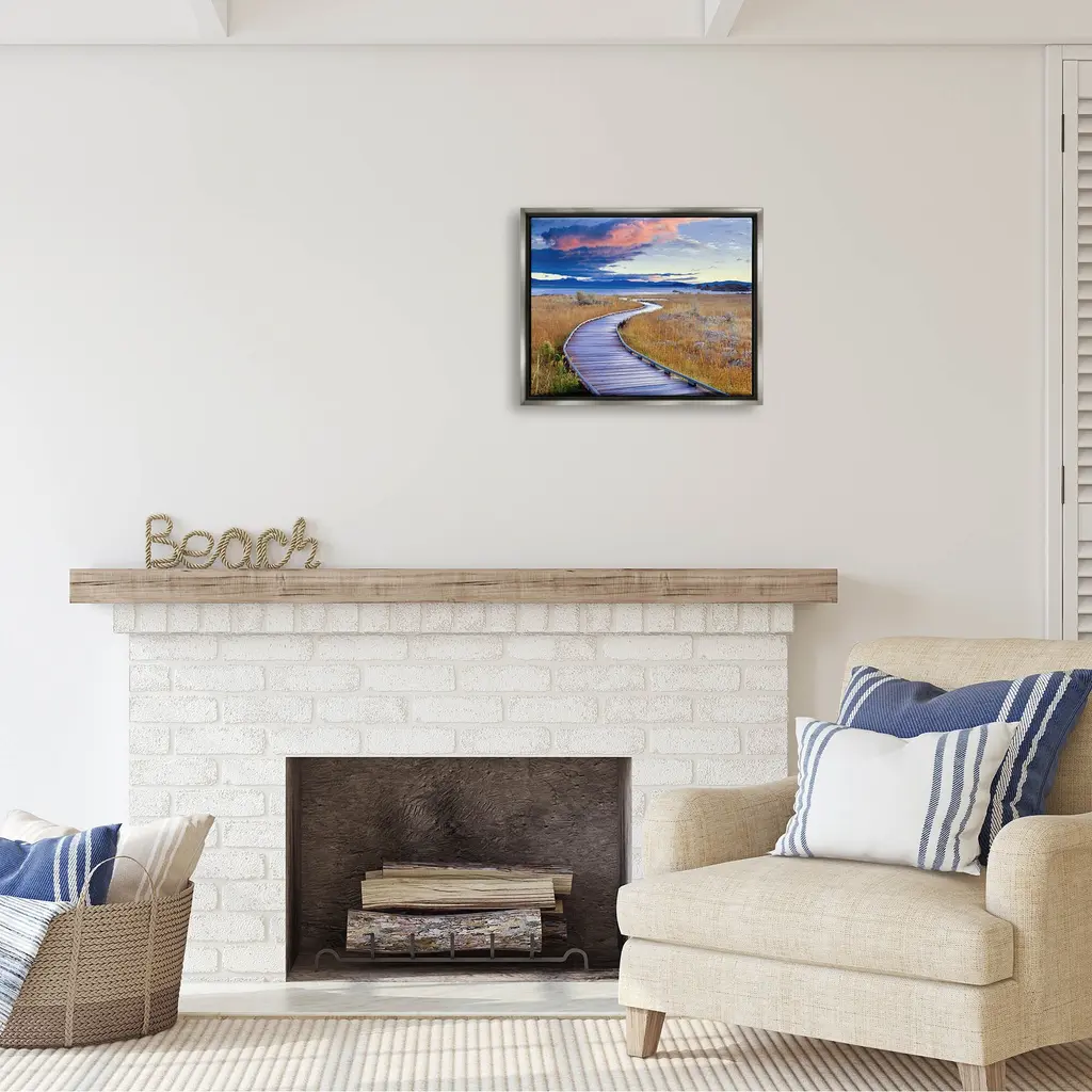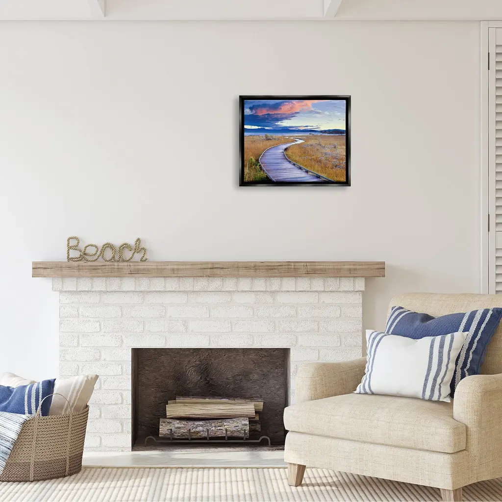 Elevate your home or office to the next level with Stupell Framed Floating Canvas Wall Art. Our premium hand-stretched canvas is mounted securely into a sturdy lightweight frame. The museum-style gap between the wrapped canvas and the box frame gives the illusion of floating artwork. Stupell Wall Art is made in the USA.Features: Dimensions: 21 x 1.7 x 17 Frame, 20 x 1.5 x 16 Canvas ArtFloating Frame Sizes Include Standard: 21 x 1.7 x 17 Oversized: 31 x 1.7 x 25Wall Art is Ready to Hang - No Installation or Hardware Needed. For Easy Set Up Lean or Layer Artwork on Shelf or Against Wall.Our elevated 1.7" Thick Floating Frame is the perfect complement to our canvas style Wall Art. We use only the highest quality inks in house with industry leading printing solutions. Canvas is hand stretched over a durable wood foundation and then mounted securly into a Modern Box Frame. Made in the USA.Artwork Relates To: Boardwalk, Nature, Scenery, Water, Waterfront, Landscape, Sky, Cloud, Beach, CoastalDesign by Dennis Frates