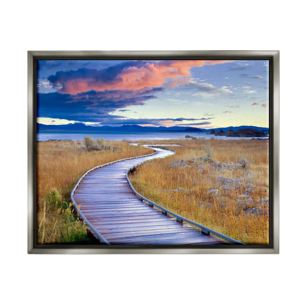 Elevate your home or office to the next level with Stupell Framed Floating Canvas Wall Art. Our premium hand-stretched canvas is mounted securely into a sturdy lightweight frame. The museum-style gap between the wrapped canvas and the box frame gives the illusion of floating artwork. Stupell Wall Art is made in the USA.Features: Dimensions: 21 x 1.7 x 17 Frame, 20 x 1.5 x 16 Canvas ArtFloating Frame Sizes Include Standard: 21 x 1.7 x 17 Oversized: 31 x 1.7 x 25Wall Art is Ready to Hang - No Installation or Hardware Needed. For Easy Set Up Lean or Layer Artwork on Shelf or Against Wall.Our elevated 1.7" Thick Floating Frame is the perfect complement to our canvas style Wall Art. We use only the highest quality inks in house with industry leading printing solutions. Canvas is hand stretched over a durable wood foundation and then mounted securly into a Modern Box Frame. Made in the USA.Artwork Relates To: Boardwalk, Nature, Scenery, Water, Waterfront, Landscape, Sky, Cloud, Beach, CoastalDesign by Dennis Frates