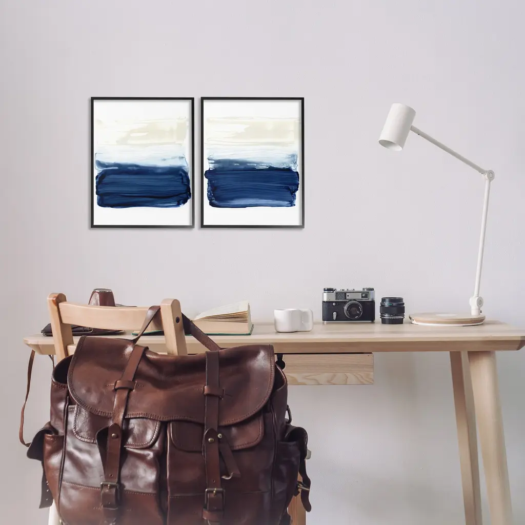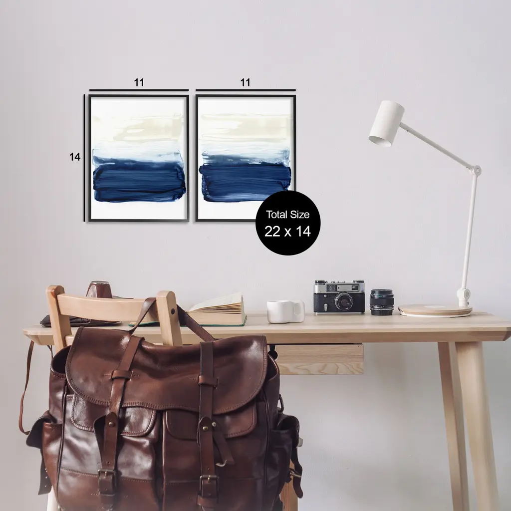 Stupell Coastal Brushstrokes Abstract Beach Ombre Design, 2Pc Multi Piece Framed Wall Art Set - 11 X 14 - Black