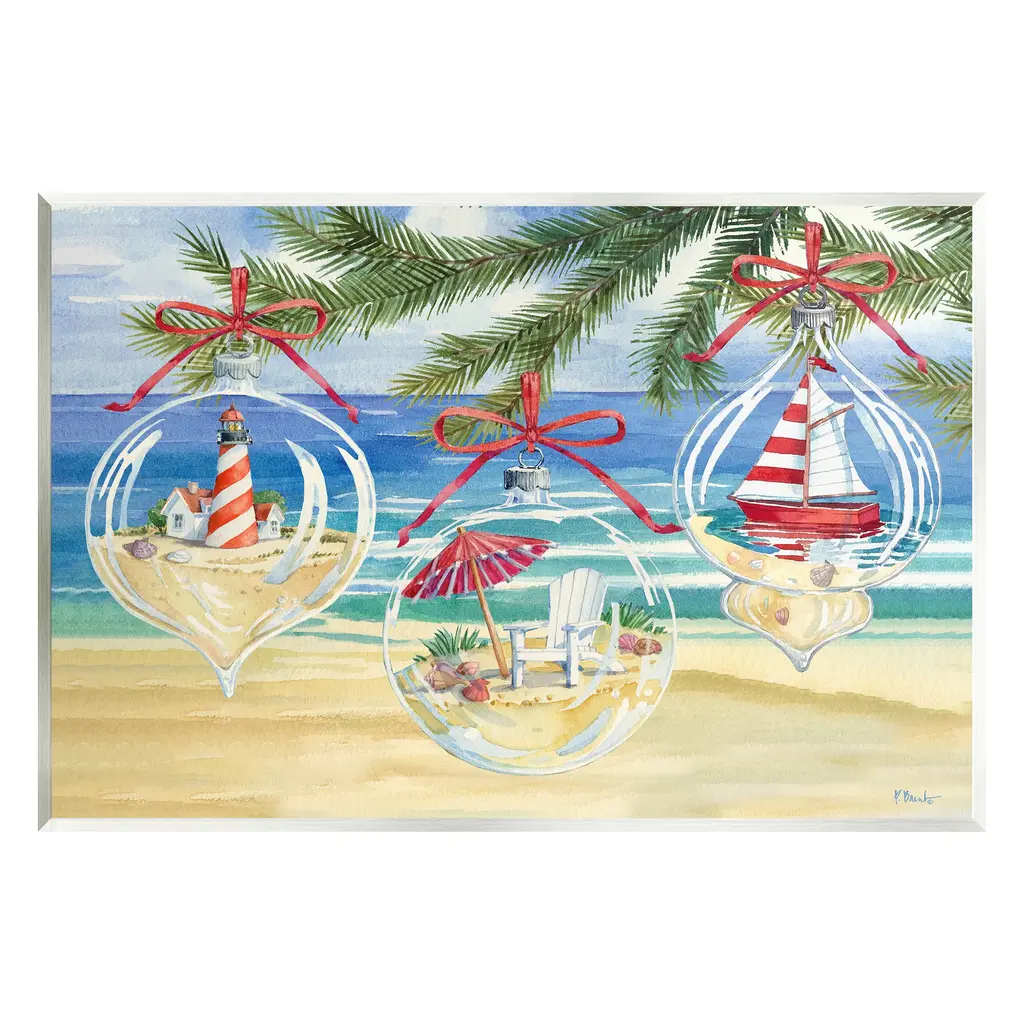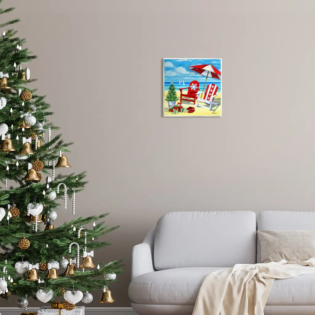 Our wall plaques start as high-quality lithograph prints mounted on durable 0.5-inch thick MDF wood. Each piece is hand finished and comes with a fresh layer of white foil on the sides to give it a crisp, clean look. Plaques arrive ready to hang without installation and come with removable plastic corners to keep them from damage in transit. Stupell Wall Art is made in the USA.Features: Dimensions: 12 x 0.5 x 12 InchesWall Art is Ready to Hang with Hardware Free Hanging. No installation required. For Easy Set Up Lean or Layer Artwork on Shelf or Against Wall.All of our wall plaques start off as high quality lithograph prints that are then mounted on durable 0.5 inch thick MDF wood. Each piece is hand finished and comes with a fresh layer of foil on the sides to give it a crisp clean look. Made In USA.Artwork Relates To: Beach Chair, Plant, Tree, Boat, Transportation, Vehicle, Christmas, Festival, Sea, Water, Christmas Tree, Beach, Coast, Shoreline, Holiday, Seasonal, TropicalDesign by Paul Brent