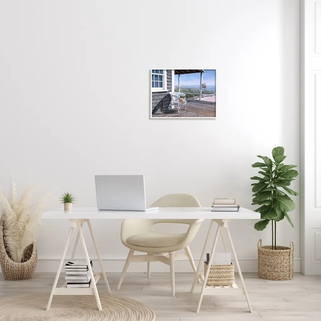 Our Framed Giclee Wall Art adds a touch of class to any space in your home or office. Frames are available in three alluring styles: black, gray farmhouse and white. Our textured artwork will add more depth and dimension to any space. Each piece is mounted with a 1.5 inch thick wood grain frame that is ready to hang! Looking for a statement piece? We have oversized artwork available.Features: Wall Art is Ready to Hang - No Installation or Hardware Needed. For Easy Set Up Lean or Layer Artwork on Shelf or Against Wall.Our giclee prints are carefully mounted on a durable MDF backing, and then perfectly finished in a 1.5 inch thick woodgrain frame. Mounted frame colors include black, gray farmhouse and white. Made In USA.Artwork Relates To: Porch; Patio; Chair; Railing; Deck; Ocean, SeasideDesign by Tom Mielko