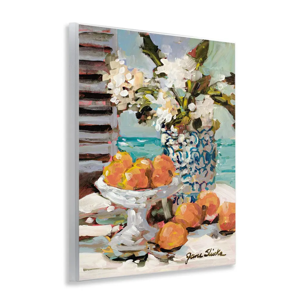 Our wall plaques start as high-quality lithograph prints mounted on durable 0.5-inch thick MDF wood. Each piece is hand finished and comes with a fresh layer of white foil on the sides to give it a crisp, clean look. Plaques arrive ready to hang without installation and come with removable plastic corners to keep them from damage in transit. Stupell Wall Art is made in the USA.Features: Dimensions: 11 x 0.5 x 14 InchesWall Art is Ready to Hang with Hardware Free Hanging. No installation required. For Easy Set Up Lean or Layer Artwork on Shelf or Against Wall.All of our wall plaques start off as high quality lithograph prints that are then mounted on durable 0.5 inch thick MDF wood. Each piece is hand finished and comes with a fresh layer of foil on the sides to give it a crisp clean look. Made In USA.Artwork Relates To: Painting, Floral, Flower, Plant, Bouquet, Vase, Orange, Citrus, Fruit, Coastal, Beach, OceanDesign by Jane Slivka