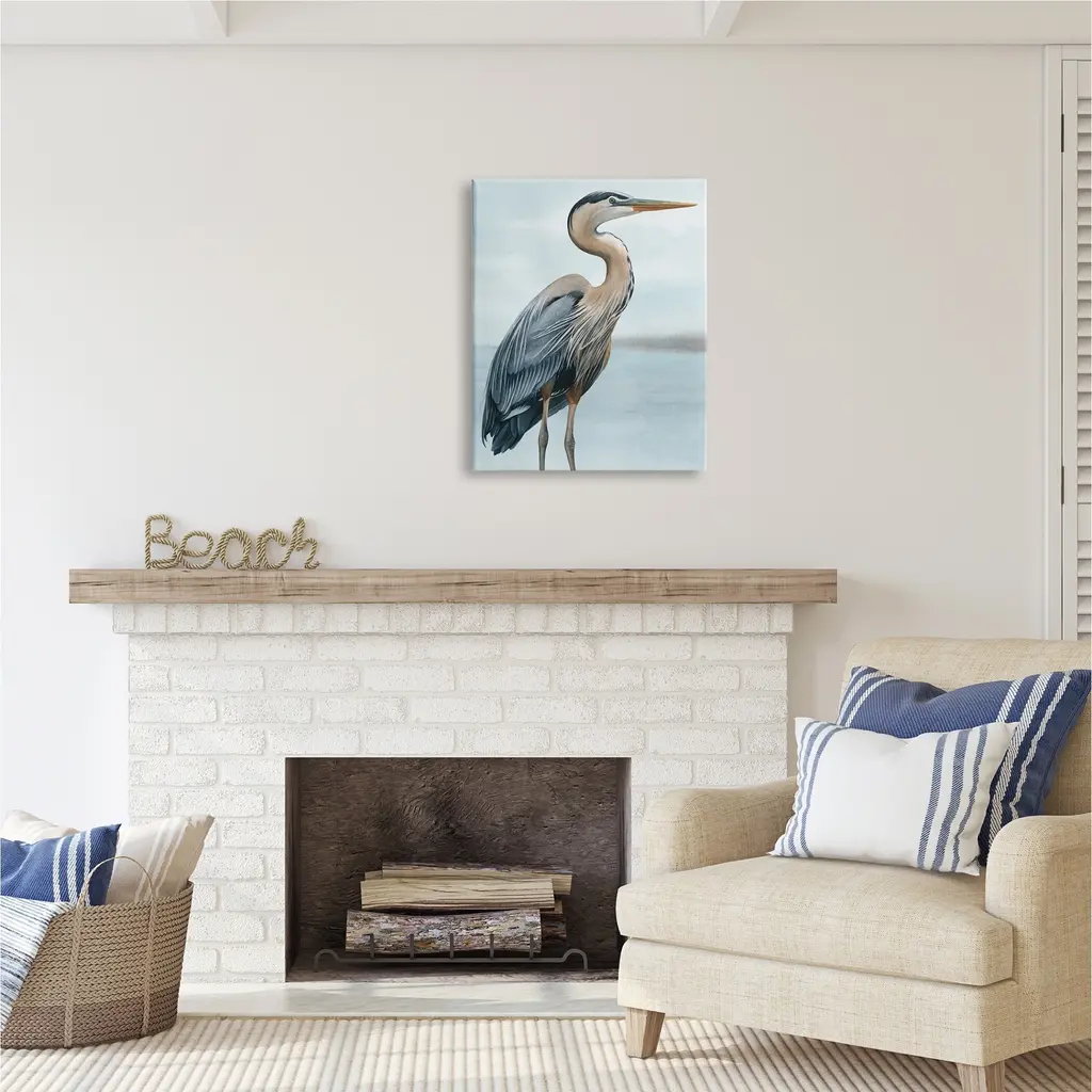 We create our stretched canvas to the highest standards. Using only the highest quality inks and canvas on Mimaki printers, we hand-cut and stretch each piece over a 1.5-inch thick wooden frame for hanging. As a result, the art comes ready to hang on the sturdy ledge with no installation required. Stupell Wall Art is made in the USA.Features: Dimensions: 16 x 1.5 x 20 InchesStretched Canvas Sizes Include Standard: 16 x 1.5 x 20 Large: 20 x 1.5 x 30 X-Large: 30 x 1.5 x 40 Oversized: 36 x 1.5 x 48Wall Art is Ready to Hang with Hardware Free Hanging. No installation required. For Easy Set Up Lean or Layer Artwork on Shelf or Against Wall.Our stretched canvas is created with the highest standards. We use only the highest quality inks and canvas on our in house Mimaki printers, and then hand cut and stretch each piece over a 1.5 inch thick wooden frame for hanging. Made In USA.Artwork Relates To: Animal, Bird, Waterfowl, Heron, Beach, Coast, Shore, PortraitDesign by Grace Popp