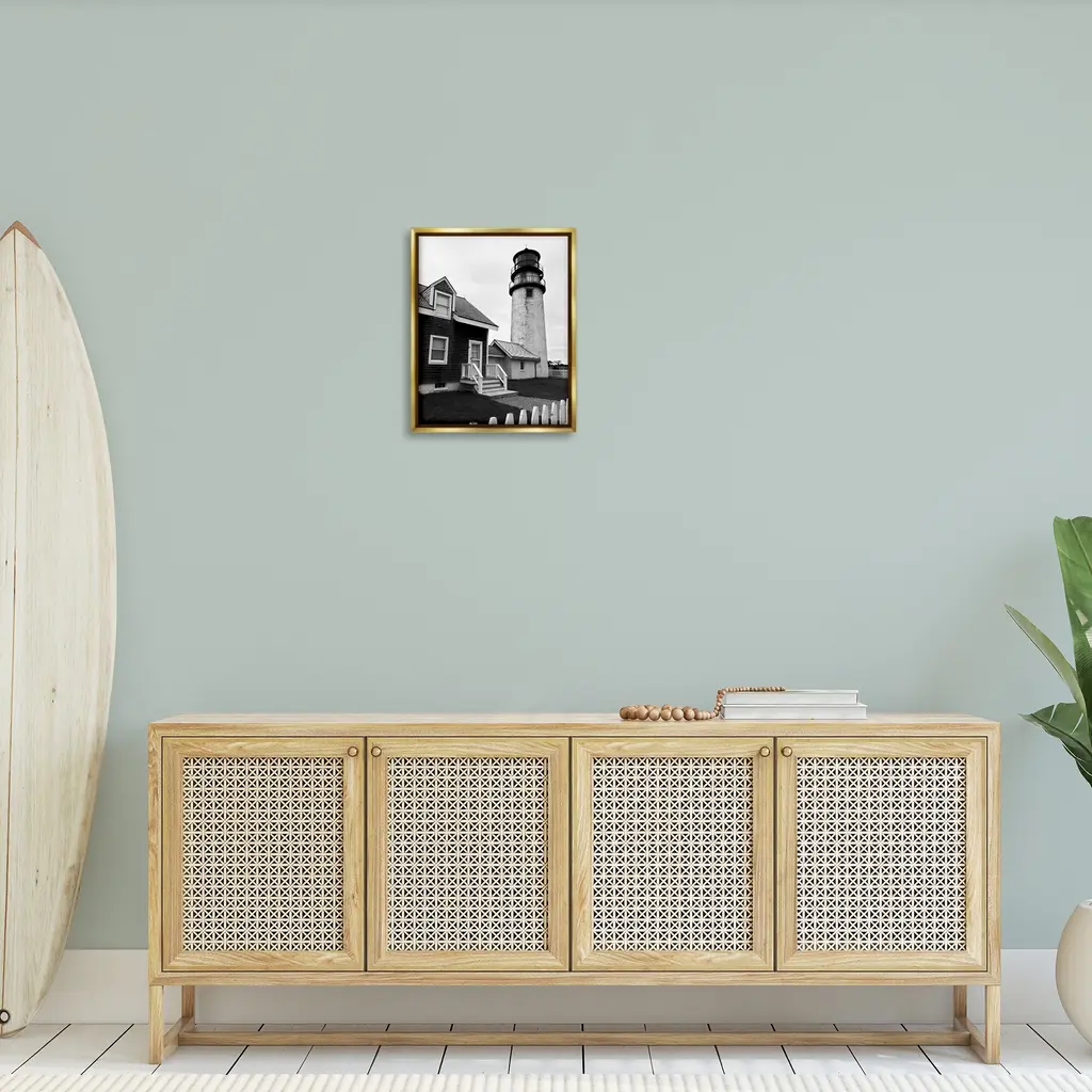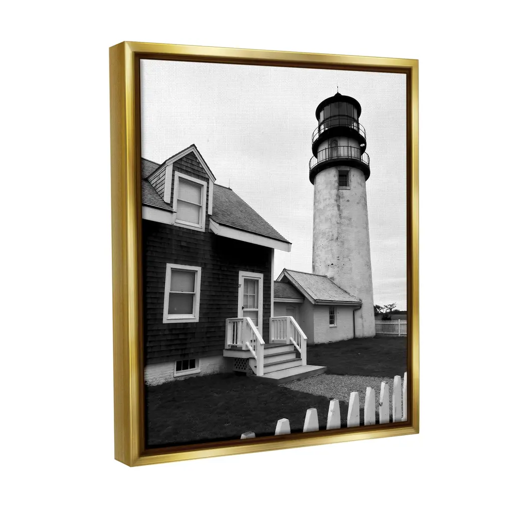 Elevate your home or office to the next level with Stupell Framed Floating Canvas Wall Art. Our premium hand-stretched canvas is mounted securely into a sturdy lightweight frame. The museum-style gap between the wrapped canvas and the box frame gives the illusion of floating artwork. Stupell Wall Art is made in the USA.Features: Dimensions: 17 x 1.7 x 21 Frame, 16 x 1.5 x 20 Canvas ArtFloating Frame Canvas Products are available in sizes 17"x21" and 25"x31". All Floating Frame Canvas Products have a 1.7" Depth.Wall Art is Ready to Hang with Hardware Free Hanging. No Installation required. For Easy Set Up Lean or Layer Artwork on Shelf or Against Wall. Artwork is Permently Fixed into the Frame.Our elevated 1.7" Thick Floating Frame is the perfect complement to our canvas style Wall Art. We use only the highest quality inks in house with industry leading printing solutions. Canvas is hand stretched over a durable wood foundation and then mounted securly into a Modern Box Frame. Made in the USA.Artwork Relates To: Beacon, Building, Lighthouse, Fence, Nautical, Beach, Ocean, Sea, Maritime, Monochrome, PhotographyDesign by GraffiTee Studios