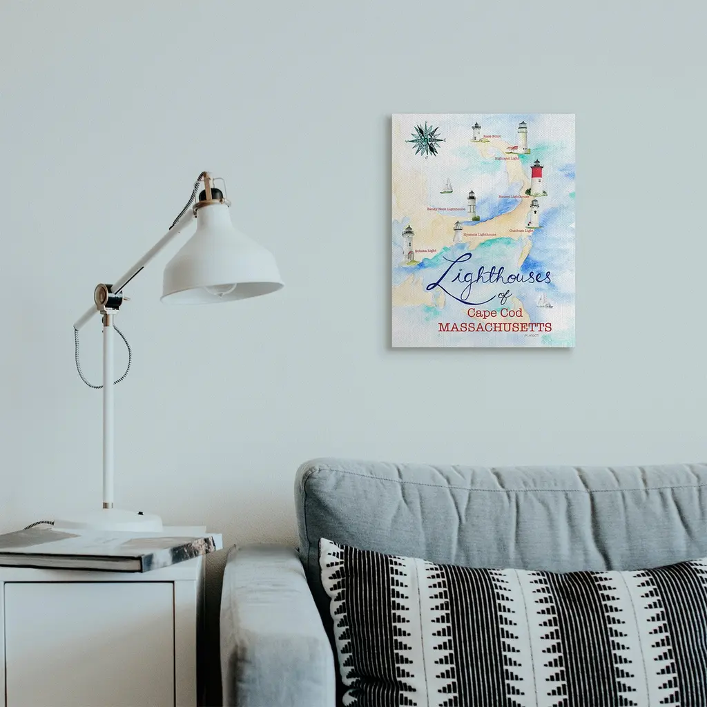 Stupell Coastal Map Of Cape Cod Massachusetts Lighthouses Canvas Wall Art - 16 X 20