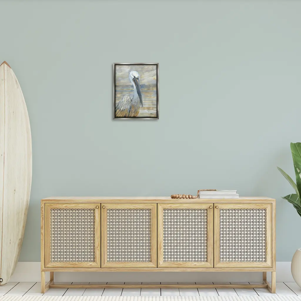Stupell Coastal Pelican Bird Abstract Portrait Floating Framed Canvas Wall Art, Design By Paul Brent - 17 X 21 - Grey