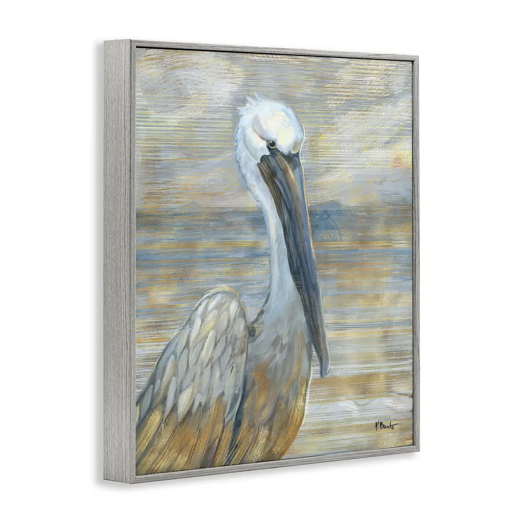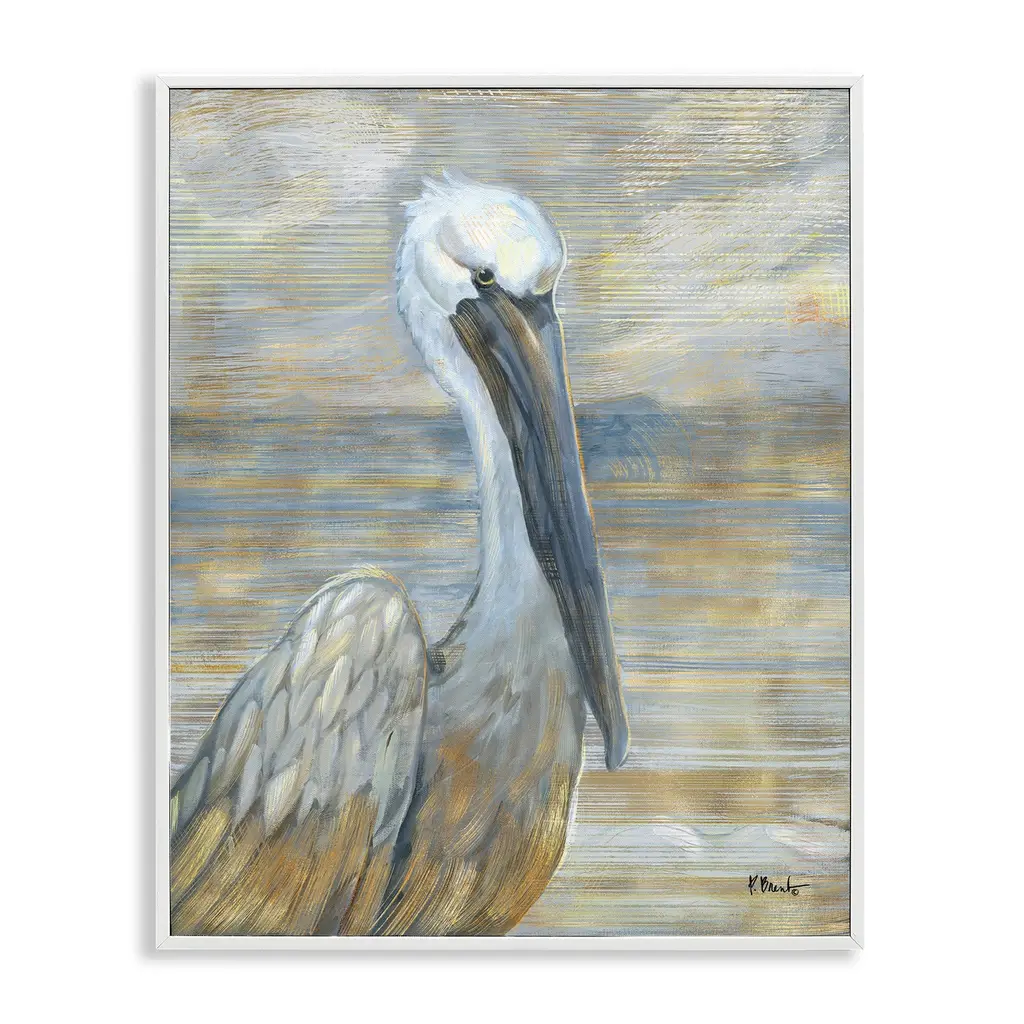 Our Framed Giclee Wall Art adds a touch of class to any space in your home or office. Frames are available in three alluring styles: black, gray farmhouse and white. Our textured artwork will add more depth and dimension to any space. Each piece is mounted with a 1.5 inch thick wood grain frame that is ready to hang! Looking for a statement piece? We have oversized artwork available.Features:Framed Giclee Sizes IncludeStandard: 11 x 1.5 x 14Large: 16 x 1.5 x 20Oversized: 24 x 1.5 x 30Wall Art is Ready to Hang - No Installation or Hardware Needed. For Easy Set Up Lean or Layer Artwork on Shelf or Against Wall.Artwork Relates To: Bird, Animal, Waterfowl, Ardeidae, Pelican, PaintingOur giclee prints are carefully mounted on a durable MDF backing, and then perfectly finished in a 1.5 inch thick woodgrain frame. Mounted frame colors include black, gray farmhouse and white. Made In USA.Design by Paul Brent