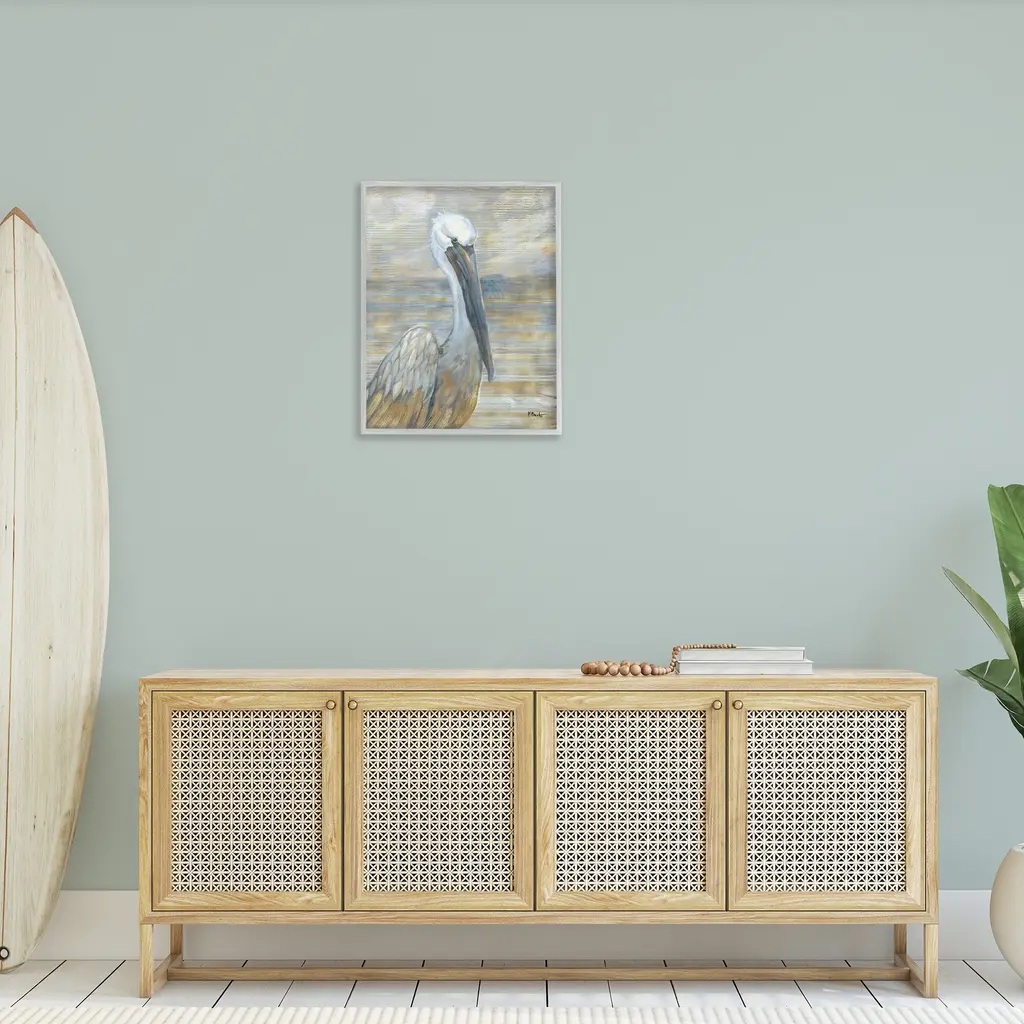 Our Framed Giclee Wall Art adds a touch of class to any space in your home or office. Frames are available in three alluring styles: black, gray farmhouse and white. Our textured artwork will add more depth and dimension to any space. Each piece is mounted with a 1.5 inch thick wood grain frame that is ready to hang! Looking for a statement piece? We have oversized artwork available.Features:Framed Giclee Sizes IncludeStandard: 11 x 1.5 x 14Large: 16 x 1.5 x 20Oversized: 24 x 1.5 x 30Wall Art is Ready to Hang - No Installation or Hardware Needed. For Easy Set Up Lean or Layer Artwork on Shelf or Against Wall.Artwork Relates To: Bird, Animal, Waterfowl, Ardeidae, Pelican, PaintingOur giclee prints are carefully mounted on a durable MDF backing, and then perfectly finished in a 1.5 inch thick woodgrain frame. Mounted frame colors include black, gray farmhouse and white. Made In USA.Design by Paul Brent