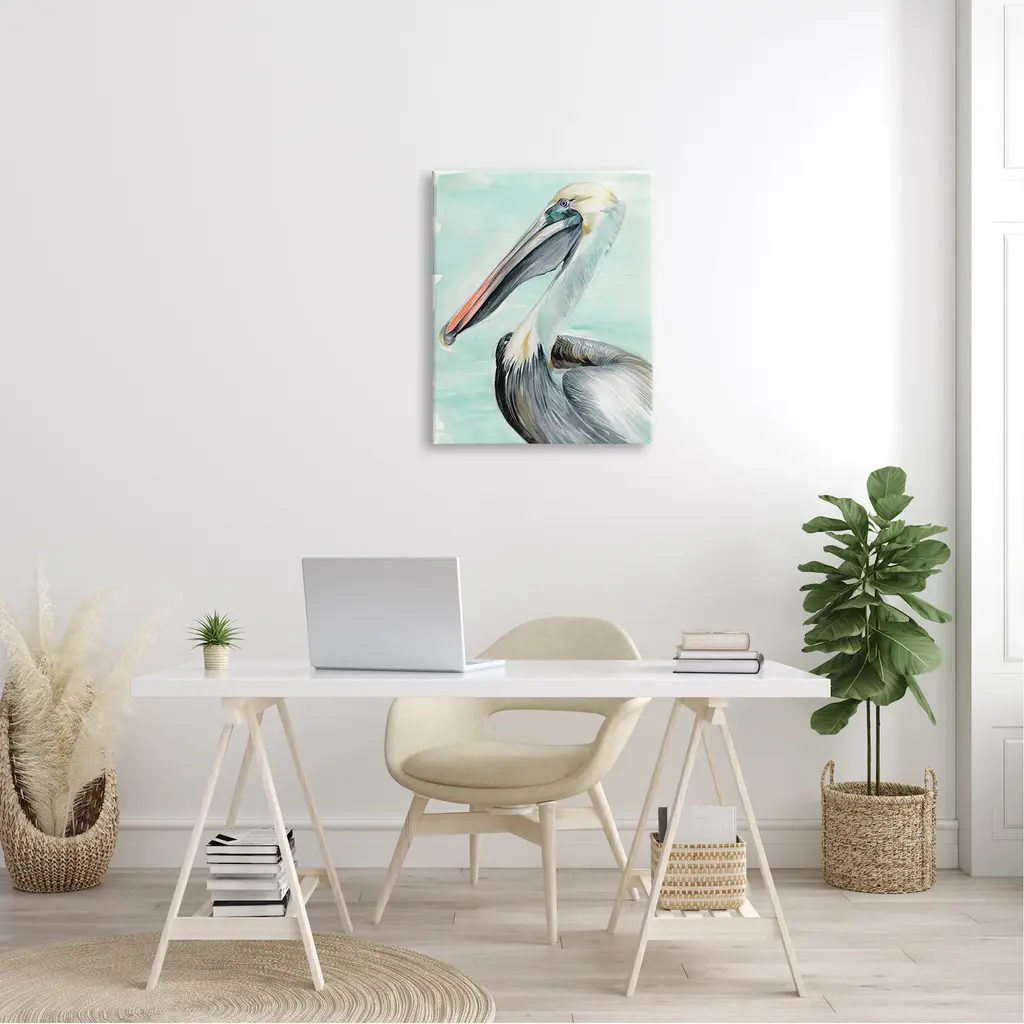 Stupell Coastal Pelican Bird Watching Turquoise Ocean Portrait Canvas Wall Art - 24 X 30