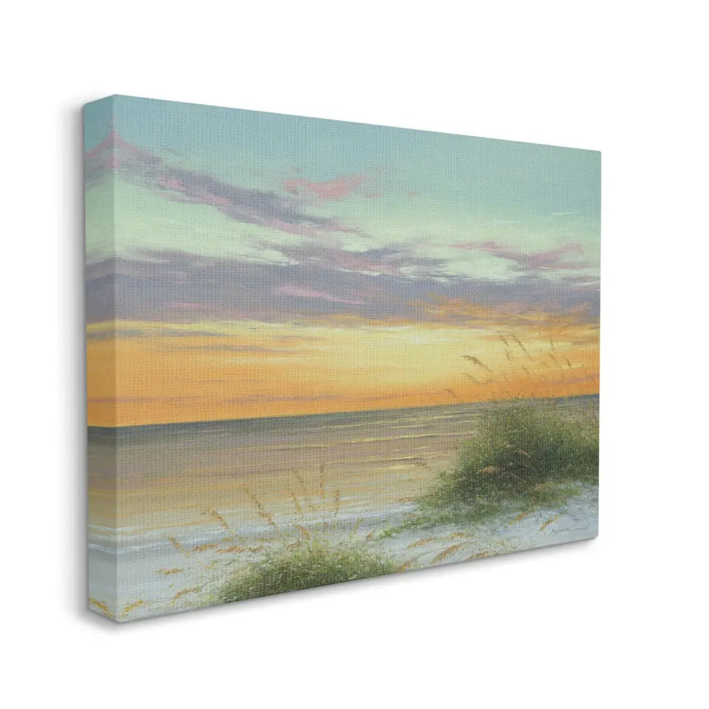 Stupell Coastal Reeds Sunset Beach Shore Canvas Wall Art By Martin Figlinski - 20 X 16