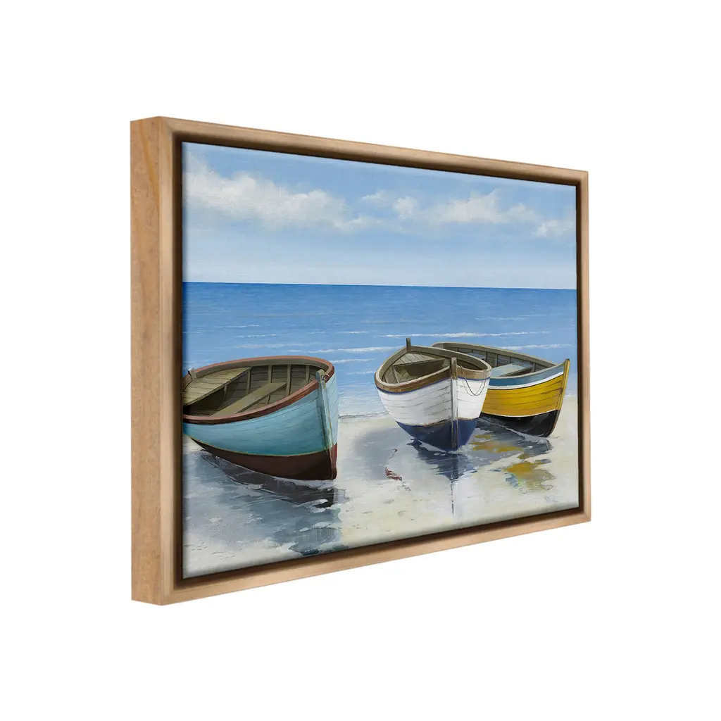 Elevate your home or office to the next level with Stupell Framed Floating Canvas Wall Art. Our premium hand-stretched canvas is mounted securely into a sturdy lightweight frame. The museum-style gap between the wrapped canvas and the box frame gives the illusion of floating artwork. Stupell Wall Art is made in the USA.Features: Dimensions: 21 x 1.7 x 17 Frame, 20 x 1.5 x 16 Canvas ArtFloating Frame Canvas Products are available in sizes 21"x17" and 31"x25". All Floating Frame Canvas Products have a 1.7" Depth.Wall Art is Ready to Hang with Hardware Free Hanging. No Installation required. For Easy Set Up Lean or Layer Artwork on Shelf or Against Wall. Artwork is Permently Fixed into the Frame.Our elevated 1.7" Thick Floating Frame is the perfect complement to our canvas style Wall Art. We use only the highest quality inks in house with industry leading printing solutions. Canvas is hand stretched over a durable wood foundation and then mounted securly into a Modern Box Frame. Made in the USA.Artwork Relates To: Beach, Coast, Sea, Shoreline, Nautical, Shore, Sailboat, Boating, RowboatDesign by Max Maxx