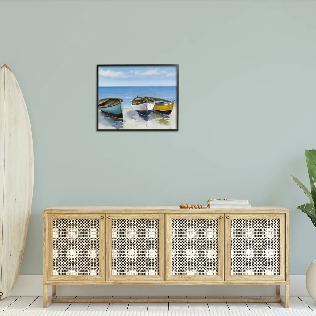 Add dimension to any room with our textured Framed Giclee Artwork. Our framed artwork is securely mounted into a 1.5-inch thick wood grain frame and ready to hang. Frames are available in three alluring styles: black, gray farmhouse and white. In addition, you should check out our oversized options if you want a statement piece. Stupell Wall Art is made in the USA.Features: Dimensions: 14 x 1.5 x 11 FramedFramed Giclee Products are available in the sizes 14"x11", 20"x16" or 30"x24". All Framed Giclee Products have a 1.5" Depth. Wall Art is Ready to Hang with Hardware Free Hanging. No installation required. For Easy Set Up Lean or Layer Artwork on Shelf or Against Wall.Our giclée prints are carefully mounted on a durable MDF backing, and then perfectly finished in a 1.5 inch thick woodgrain frame. Mounted frame colors include black, gray farmhouse and white. Made In USA.Artwork Relates To: Beach, Coast, Sea, Shoreline, Nautical, Shore, Sailboat, Boating, RowboatDesign by Max Maxx