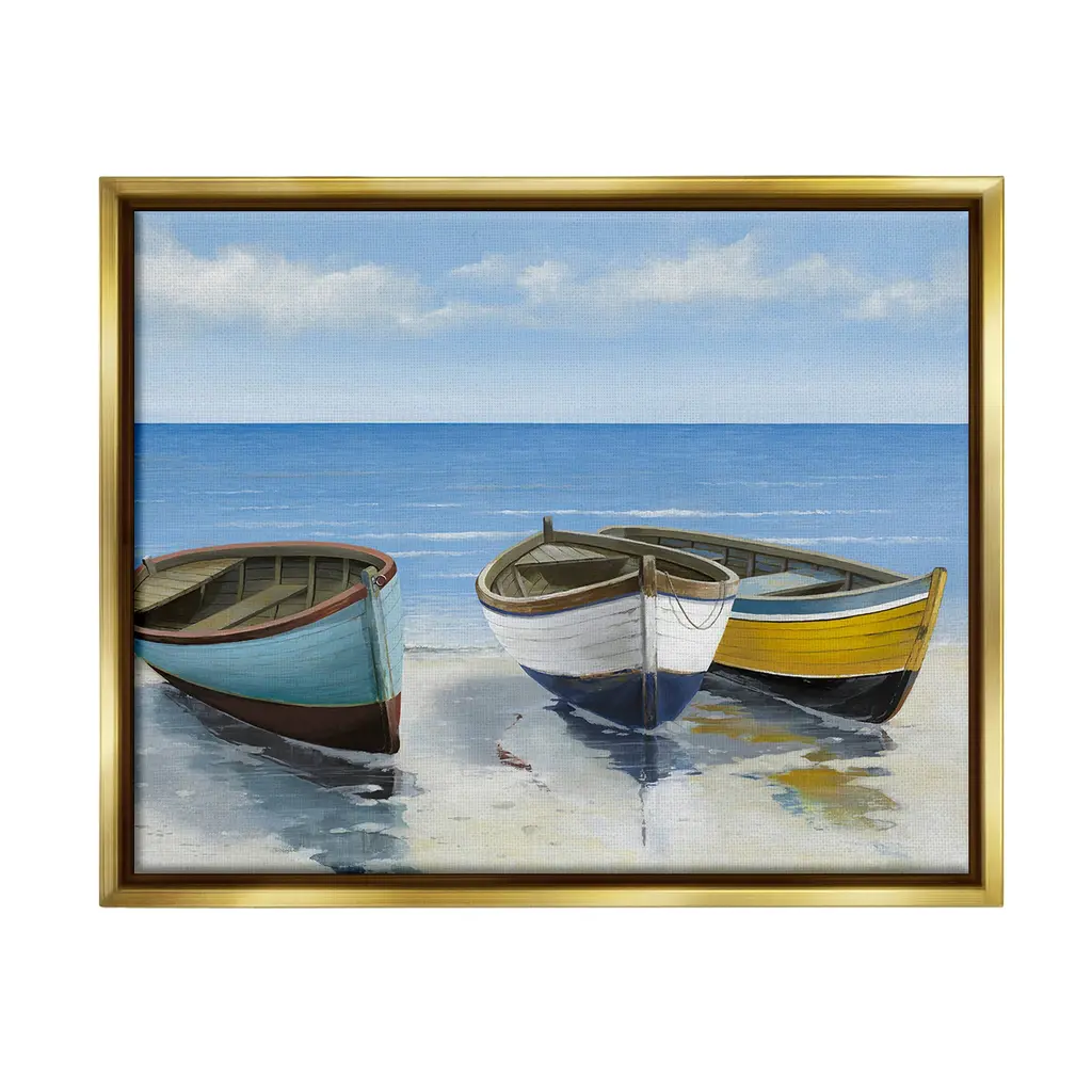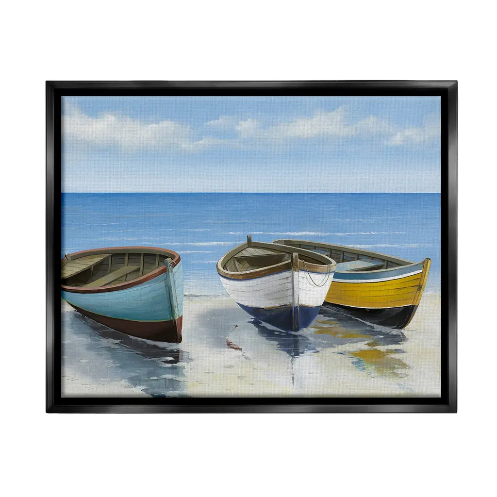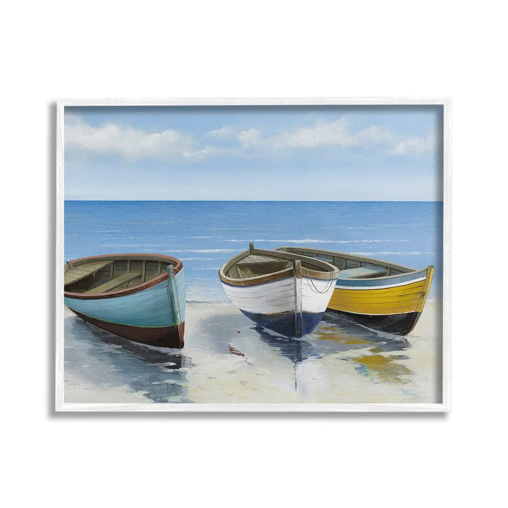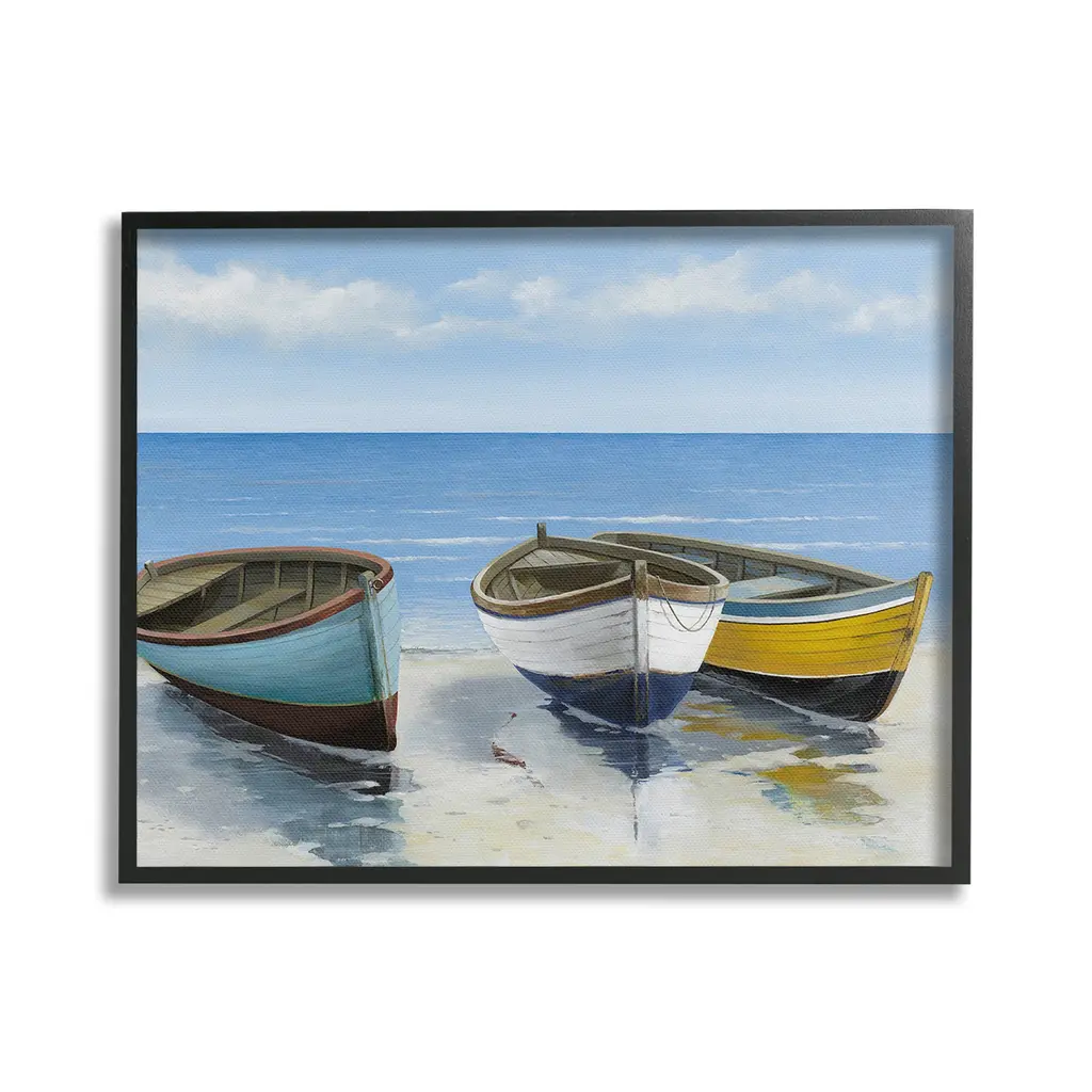 Add dimension to any room with our textured Framed Giclee Artwork. Our framed artwork is securely mounted into a 1.5-inch thick wood grain frame and ready to hang. Frames are available in three alluring styles: black, gray farmhouse and white. In addition, you should check out our oversized options if you want a statement piece. Stupell Wall Art is made in the USA.Features: Dimensions: 14 x 1.5 x 11 FramedFramed Giclee Products are available in the sizes 14"x11", 20"x16" or 30"x24". All Framed Giclee Products have a 1.5" Depth. Wall Art is Ready to Hang with Hardware Free Hanging. No installation required. For Easy Set Up Lean or Layer Artwork on Shelf or Against Wall.Our giclée prints are carefully mounted on a durable MDF backing, and then perfectly finished in a 1.5 inch thick woodgrain frame. Mounted frame colors include black, gray farmhouse and white. Made In USA.Artwork Relates To: Beach, Coast, Sea, Shoreline, Nautical, Shore, Sailboat, Boating, RowboatDesign by Max Maxx