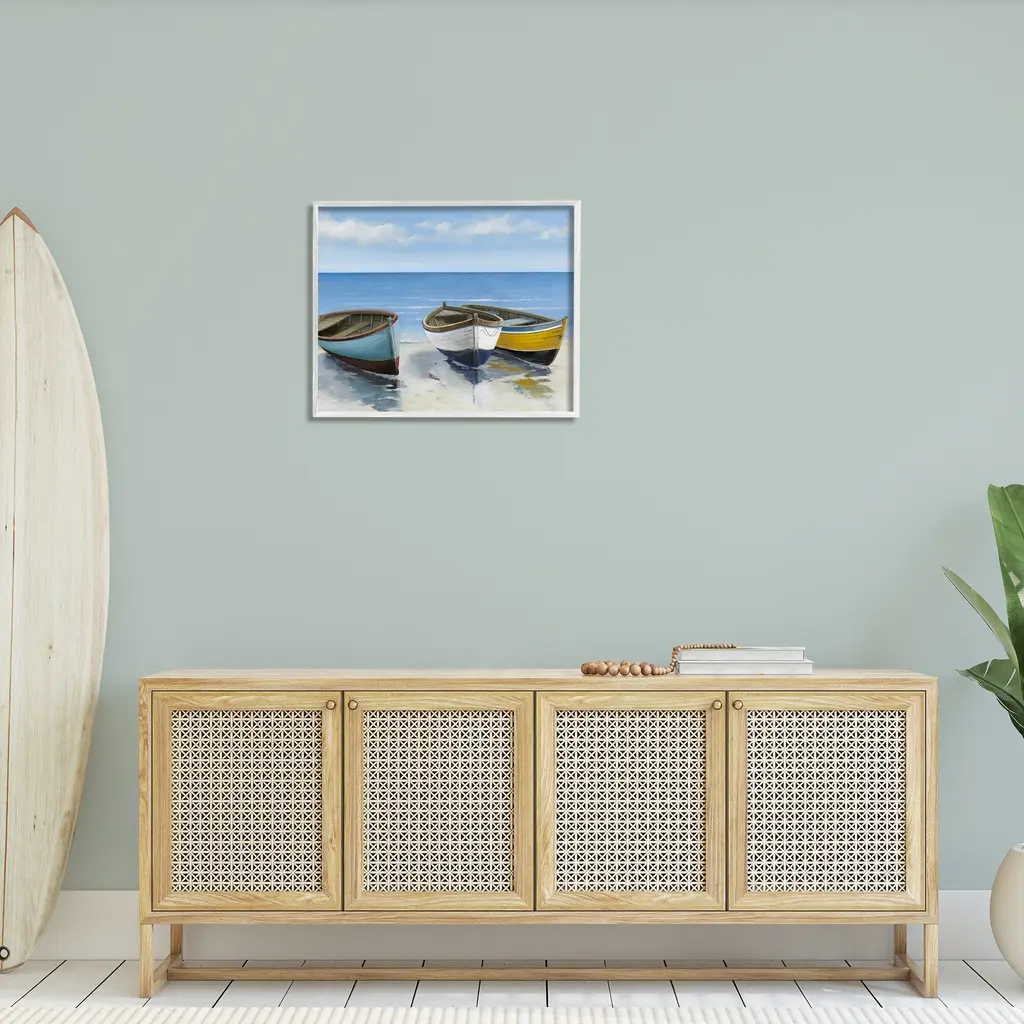 Stupell Coastal Rowboats On Shore Framed Giclee Art Design By Max Maxx - 30 X 24 - White