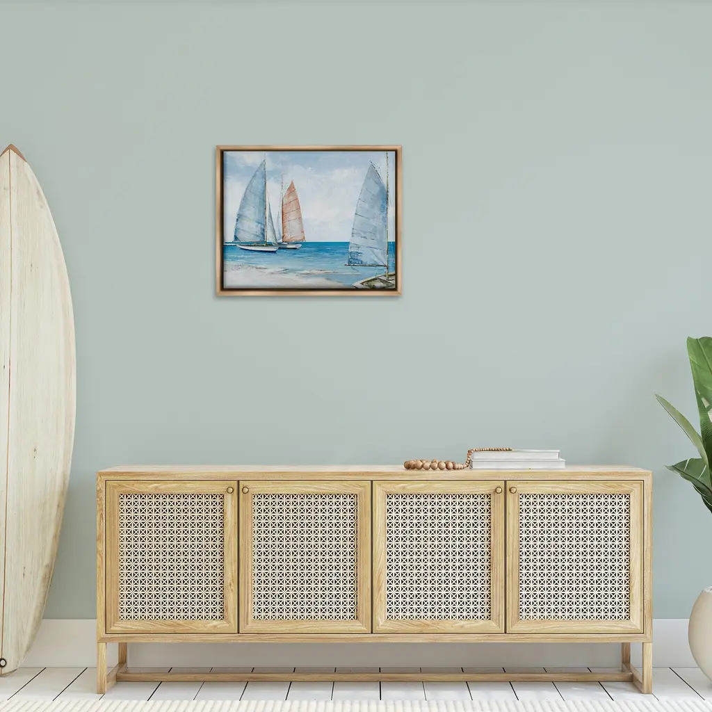Elevate your home or office to the next level with Stupell Framed Floating Canvas Wall Art. Our premium hand-stretched canvas is mounted securely into a sturdy lightweight frame. The museum-style gap between the wrapped canvas and the box frame gives the illusion of floating artwork. Stupell Wall Art is made in the USA.Features: Dimensions: 21 x 1.7 x 17 Frame, 20 x 1.5 x 16 Canvas ArtFloating Frame Canvas Products are available in sizes 21"x17" and 31"x25". All Floating Frame Canvas Products have a 1.7" Depth.Wall Art is Ready to Hang with Hardware Free Hanging. No Installation required. For Easy Set Up Lean or Layer Artwork on Shelf or Against Wall. Artwork is Permently Fixed into the Frame.Our elevated 1.7" Thick Floating Frame is the perfect complement to our canvas style Wall Art. We use only the highest quality inks in house with industry leading printing solutions. Canvas is hand stretched over a durable wood foundation and then mounted securly into a Modern Box Frame. Made in the USA.Artwork Relates To: Beach, Coast, Sea, Shoreline, Nautical, Shore, Sailboat, BoatingDesign by Max Maxx