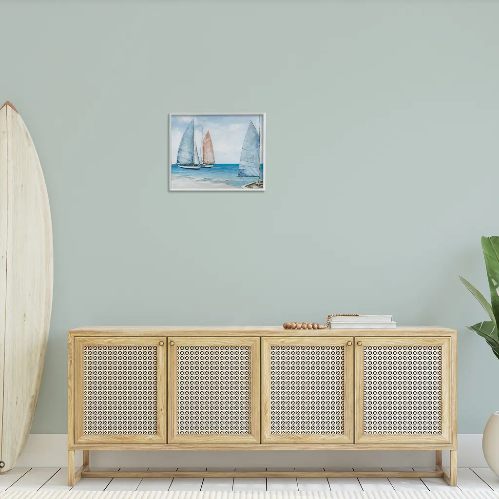 Add dimension to any room with our textured Framed Giclee Artwork. Our framed artwork is securely mounted into a 1.5-inch thick wood grain frame and ready to hang. Frames are available in three alluring styles: black, gray farmhouse and white. In addition, you should check out our oversized options if you want a statement piece. Stupell Wall Art is made in the USA.Features: Dimensions: 14 x 1.5 x 11 FramedFramed Giclee Products are available in the sizes 14"x11", 20"x16" or 30"x24". All Framed Giclee Products have a 1.5" Depth. Wall Art is Ready to Hang with Hardware Free Hanging. No installation required. For Easy Set Up Lean or Layer Artwork on Shelf or Against Wall.Our giclée prints are carefully mounted on a durable MDF backing, and then perfectly finished in a 1.5 inch thick woodgrain frame. Mounted frame colors include black, gray farmhouse and white. Made In USA.Artwork Relates To: Beach, Coast, Sea, Shoreline, Nautical, Shore, Sailboat, BoatingDesign by Max Maxx