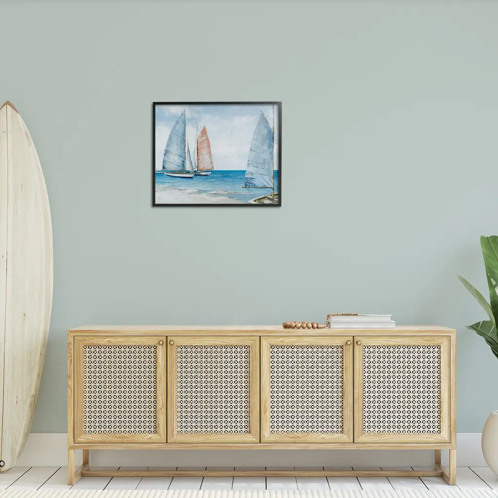 Add dimension to any room with our textured Framed Giclee Artwork. Our framed artwork is securely mounted into a 1.5-inch thick wood grain frame and ready to hang. Frames are available in three alluring styles: black, gray farmhouse and white. In addition, you should check out our oversized options if you want a statement piece. Stupell Wall Art is made in the USA.Features: Dimensions: 14 x 1.5 x 11 FramedFramed Giclee Products are available in the sizes 14"x11", 20"x16" or 30"x24". All Framed Giclee Products have a 1.5" Depth. Wall Art is Ready to Hang with Hardware Free Hanging. No installation required. For Easy Set Up Lean or Layer Artwork on Shelf or Against Wall.Our giclée prints are carefully mounted on a durable MDF backing, and then perfectly finished in a 1.5 inch thick woodgrain frame. Mounted frame colors include black, gray farmhouse and white. Made In USA.Artwork Relates To: Beach, Coast, Sea, Shoreline, Nautical, Shore, Sailboat, BoatingDesign by Max Maxx