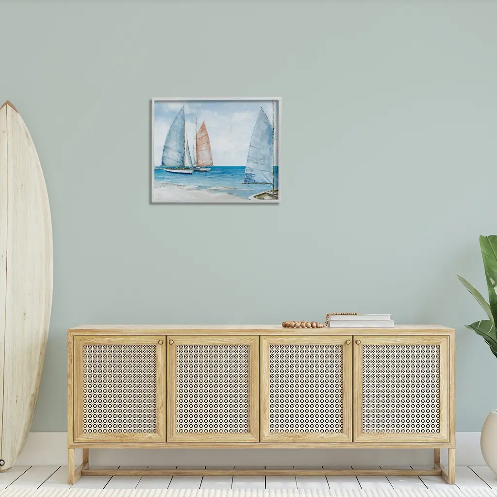 Add dimension to any room with our textured Framed Giclee Artwork. Our framed artwork is securely mounted into a 1.5-inch thick wood grain frame and ready to hang. Frames are available in three alluring styles: black, gray farmhouse and white. In addition, you should check out our oversized options if you want a statement piece. Stupell Wall Art is made in the USA.Features: Dimensions: 14 x 1.5 x 11 FramedFramed Giclee Products are available in the sizes 14"x11", 20"x16" or 30"x24". All Framed Giclee Products have a 1.5" Depth. Wall Art is Ready to Hang with Hardware Free Hanging. No installation required. For Easy Set Up Lean or Layer Artwork on Shelf or Against Wall.Our giclée prints are carefully mounted on a durable MDF backing, and then perfectly finished in a 1.5 inch thick woodgrain frame. Mounted frame colors include black, gray farmhouse and white. Made In USA.Artwork Relates To: Beach, Coast, Sea, Shoreline, Nautical, Shore, Sailboat, BoatingDesign by Max Maxx