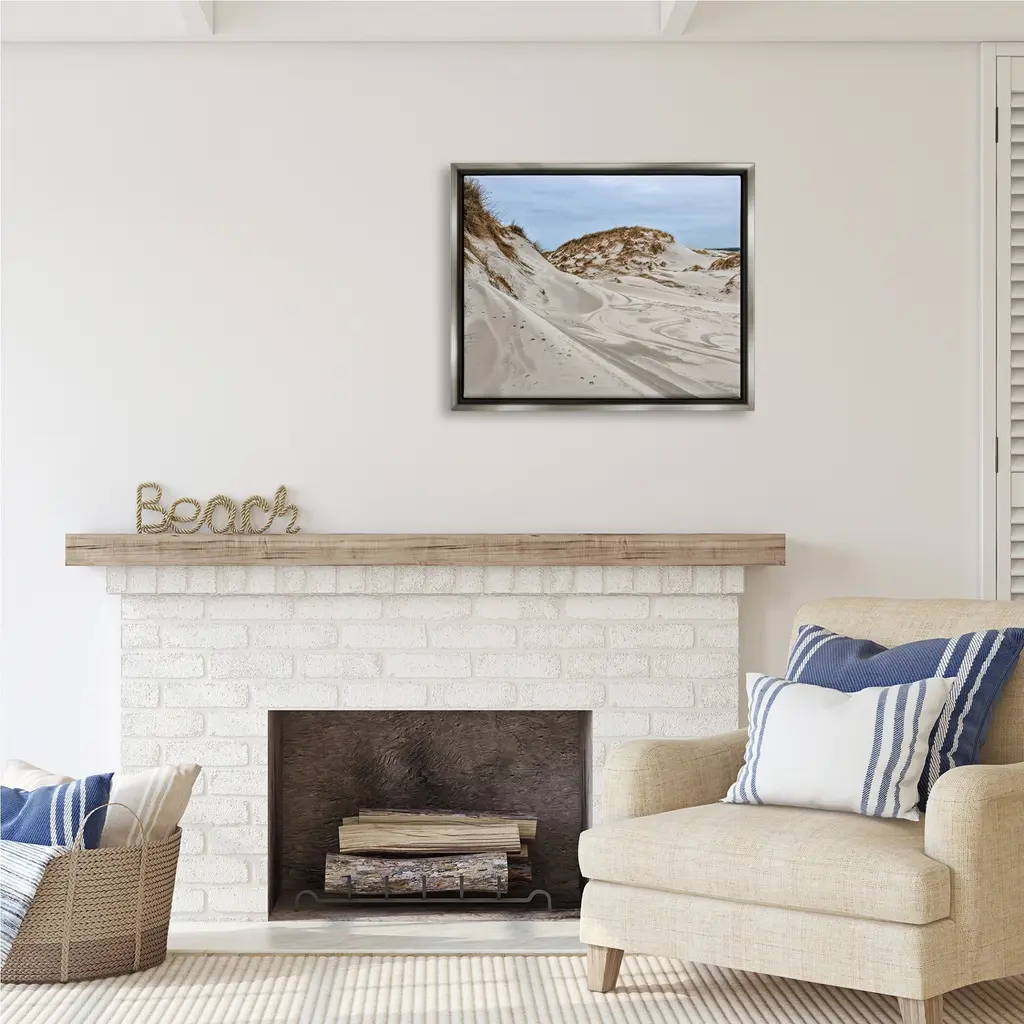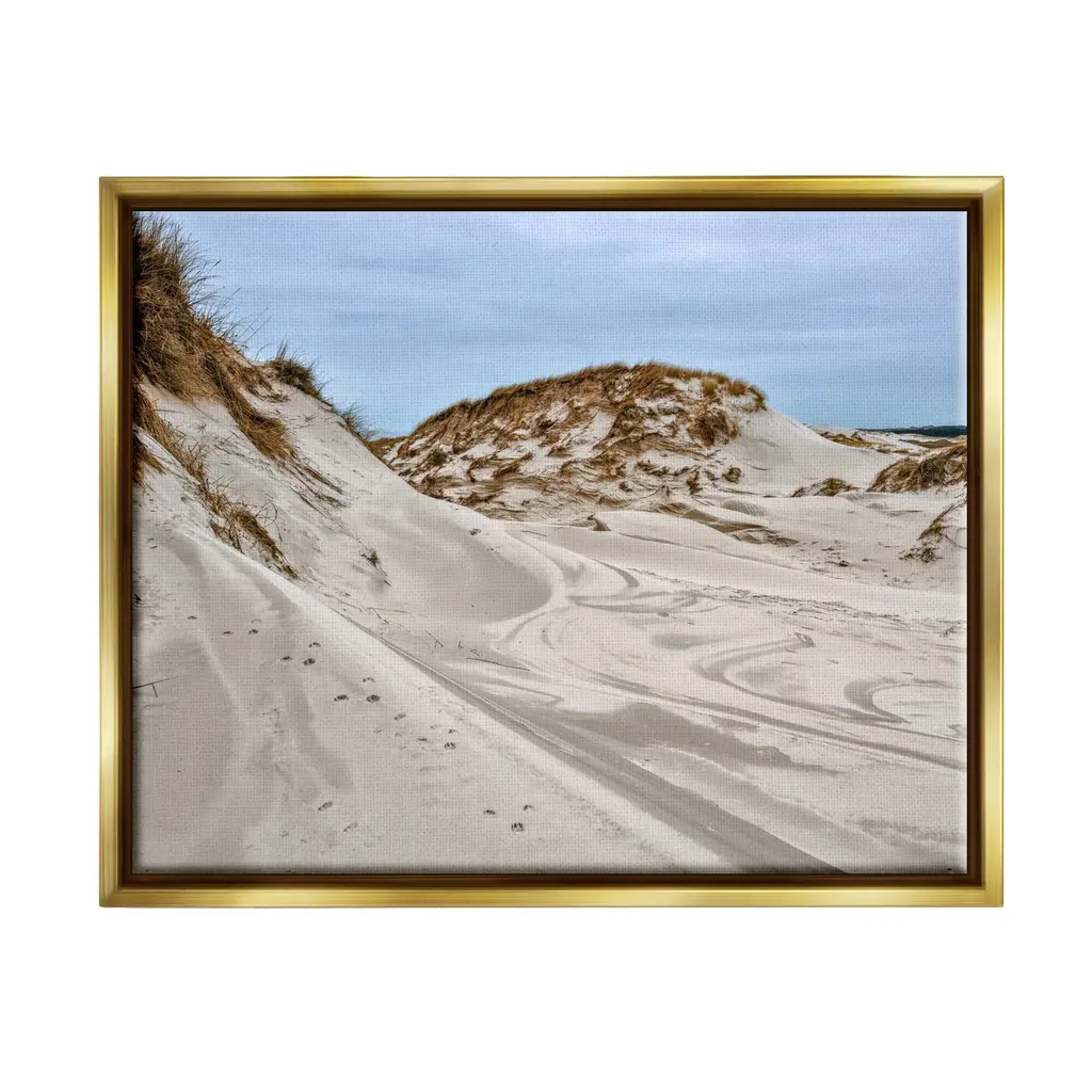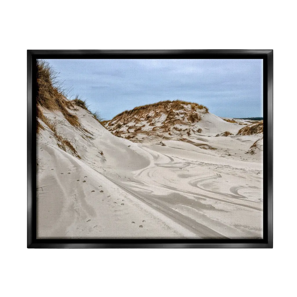 Elevate your home or office to the next level with Stupell Framed Floating Canvas Wall Art. Our premium hand-stretched canvas is mounted securely into a sturdy lightweight frame. The museum-style gap between the wrapped canvas and the box frame gives the illusion of floating artwork. Stupell Wall Art is made in the USA.Features: Dimensions: 21 x 1.7 x 17 Frame, 20 x 1.5 x 16 Canvas ArtFloating Frame Sizes Include Standard: 21 x 1.7 x 17 Oversized: 31 x 1.7 x 25Wall Art is Ready to Hang with Hardware Free Hanging. No installation required. For Easy Set Up Lean or Layer Artwork on Shelf or Against Wall.Our elevated 1.7" Thick Floating Frame is the perfect complement to our canvas style Wall Art. We use only the highest quality inks in house with industry leading printing solutions. Canvas is hand stretched over a durable wood foundation and then mounted securly into a Modern Box Frame. Made in the USA.Artwork Relates To: Nature, Dune, Sand, Scenery, Slope, Coastal, BeachDesign by Lil' Rue