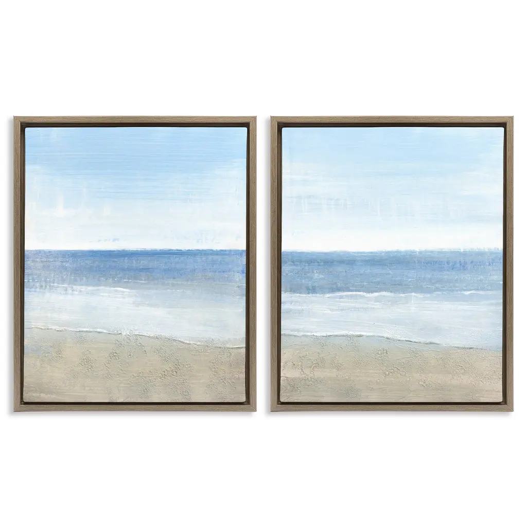 Elevate your home or office to the next level with Stupell Framed Floating Canvas Wall Art. Our premium hand-stretched canvas is mounted securely into a sturdy lightweight frame. The museum-style gap between the wrapped canvas and the box frame gives the illusion of floating artwork. Stupell Wall Art is made in the USA.Features: Dimensions: 2 Piece Set, Each Frame is 17 x 1.7 x 21Two Piece Floater Framed Canvas are available as 17x21 or 25x31 Panels. All Floater Frame Products have a 1.7" Depth.Wall Art is Ready to Hang with Hardware Free Hanging. No Installation required. For Easy Set Up Lean or Layer Artwork on Shelf or Against Wall. Artwork is Permently Fixed into the Frame.Our elevated 1.7" Thick Floating Frame is the perfect complement to our canvas style Wall Art. We use only the highest quality inks in house with industry leading printing solutions. Canvas is hand stretched over a durable wood foundation and then mounted securly into a Modern Box Frame. Made in the USA.Artwork Relates To: Beach, Landscape, Seaside, Coastal, ShoreDesign by Tim O'Toole