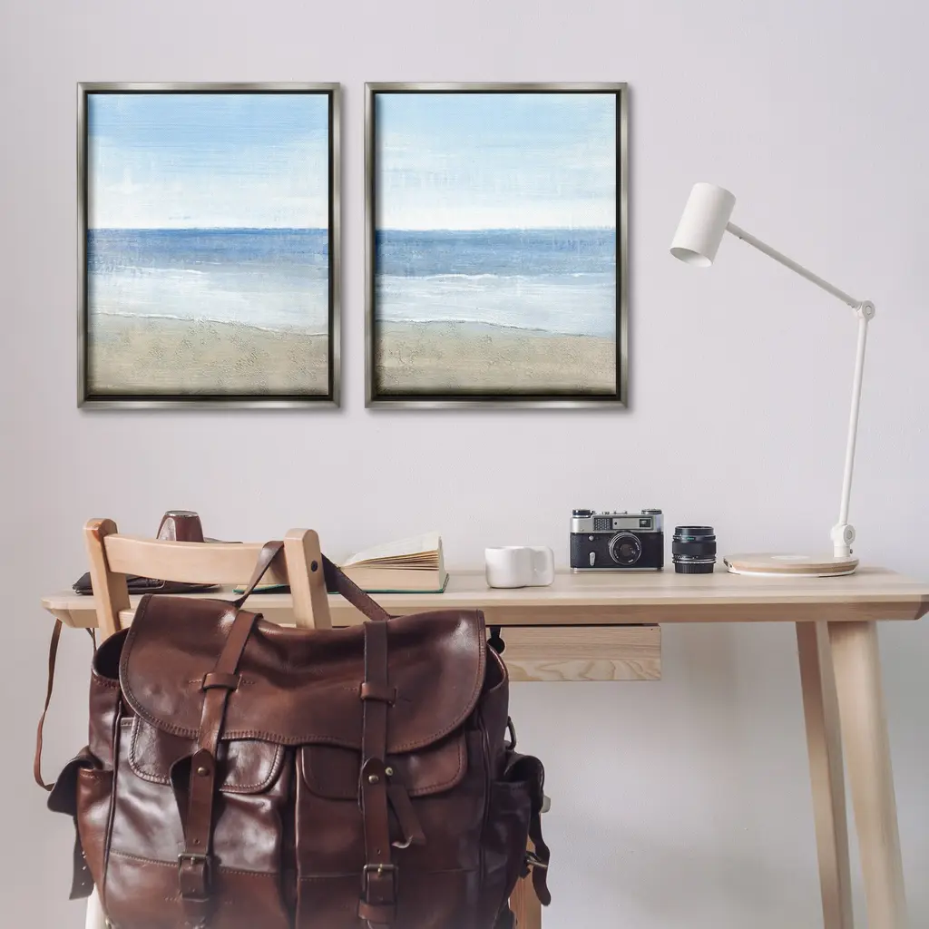 Elevate your home or office to the next level with Stupell Framed Floating Canvas Wall Art. Our premium hand-stretched canvas is mounted securely into a sturdy lightweight frame. The museum-style gap between the wrapped canvas and the box frame gives the illusion of floating artwork. Stupell Wall Art is made in the USA.Features: Dimensions: 2 Piece Set, Each Frame is 17 x 1.7 x 21Two Piece Floater Framed Canvas are available as 17x21 or 25x31 Panels. All Floater Frame Products have a 1.7" Depth.Wall Art is Ready to Hang with Hardware Free Hanging. No Installation required. For Easy Set Up Lean or Layer Artwork on Shelf or Against Wall. Artwork is Permently Fixed into the Frame.Our elevated 1.7" Thick Floating Frame is the perfect complement to our canvas style Wall Art. We use only the highest quality inks in house with industry leading printing solutions. Canvas is hand stretched over a durable wood foundation and then mounted securly into a Modern Box Frame. Made in the USA.Artwork Relates To: Beach, Landscape, Seaside, Coastal, ShoreDesign by Tim O'Toole