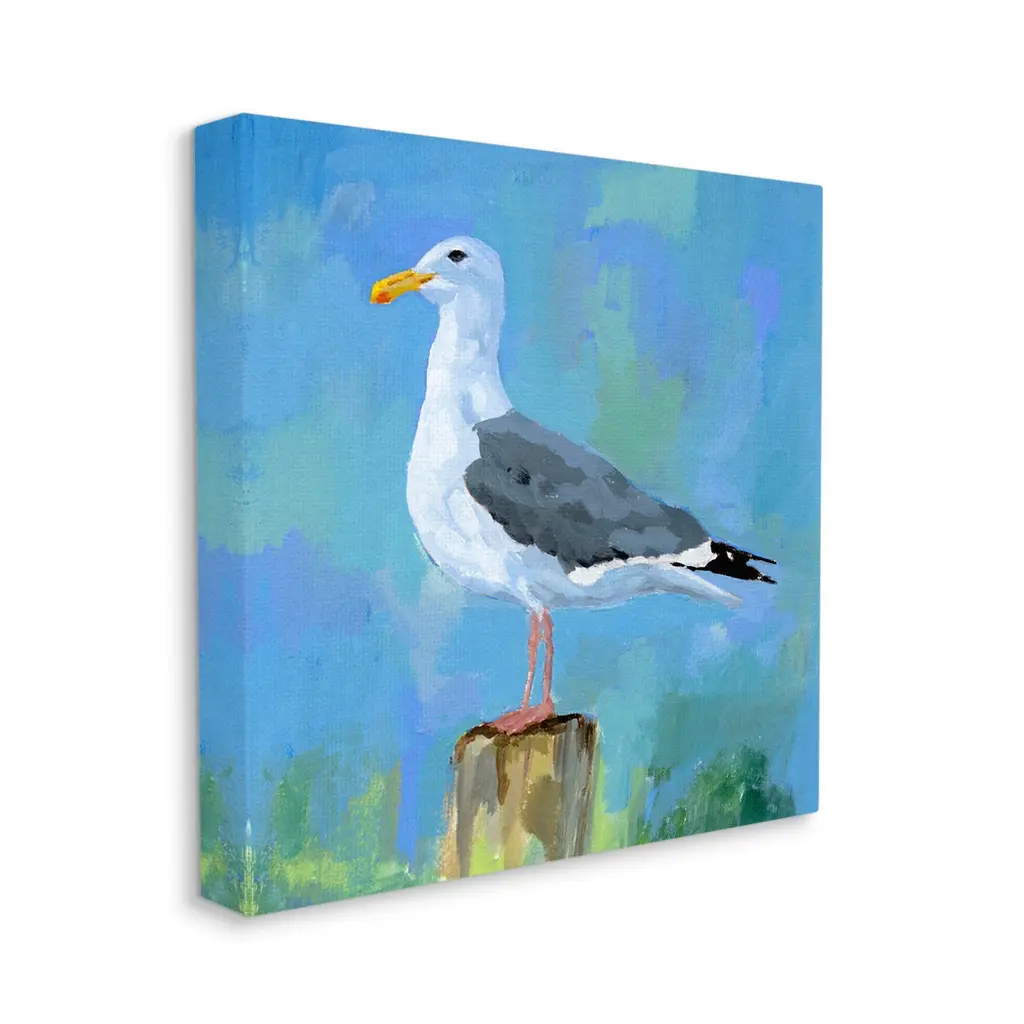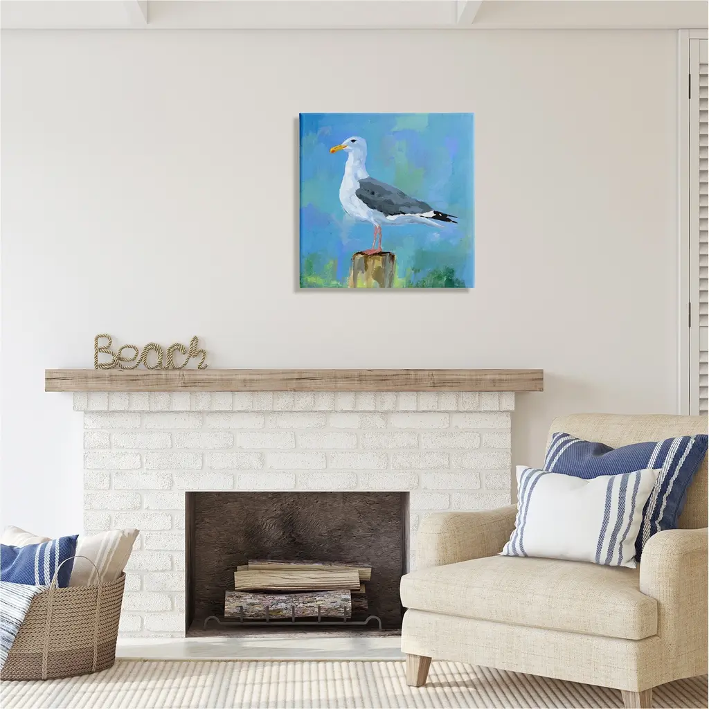 We create our stretched canvas to the highest standards. Using only the highest quality inks and canvas on Mimaki printers, we hand-cut and stretch each piece over a 1.5-inch thick wooden frame for hanging. As a result, the art comes ready to hang on the sturdy ledge with no installation required. Stupell Wall Art is made in the USA.Features: Dimensions: 17 x 1.5 x 17 InchesStretched Canvas Sizes Include Standard: 17 x 1.5 x 17 Large: 24 x 1.5 x 24 X-Large: 30 x 1.5 x 30 Oversized: 36 x 1.5 x 36Wall Art is Ready to Hang with Hardware Free Hanging. No installation required. For Easy Set Up Lean or Layer Artwork on Shelf or Against Wall.Our stretched canvas is created with the highest standards. We use only the highest quality inks and canvas on our in house Mimaki printers, and then hand cut and stretch each piece over a 1.5 inch thick wooden frame for hanging. Made In USA.Artwork Relates To: Animal, Bird, Seagull, Waterfowl, Beak, Coastal, PaintingDesign by Victoria Barnes