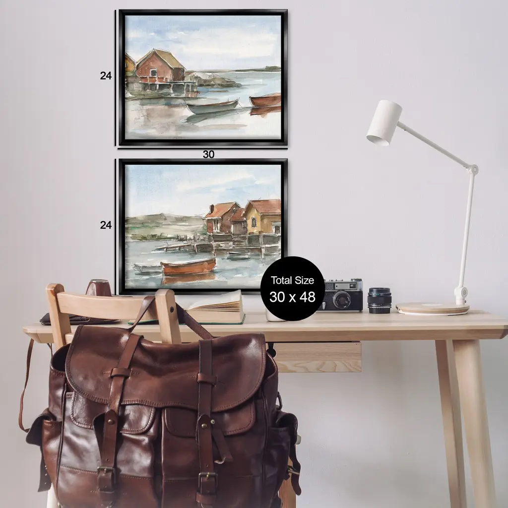Elevate your home or office to the next level with Stupell Framed Floating Canvas Wall Art. Our premium hand-stretched canvas is mounted securely into a sturdy lightweight frame. The museum-style gap between the wrapped canvas and the box frame gives the illusion of floating artwork. Stupell Wall Art is made in the USA.Features: Dimensions: 2 Piece Set, Each Frame is 17 x 1.7 x 21Two Piece Floater Framed Canvas are available as 21"x17" or 31"x24" Panels. All Floater Frame Products have a 1.7" Depth.Wall Art is Ready to Hang with Hardware Free Hanging. No Installation required. For Easy Set Up Lean or Layer Artwork on Shelf or Against Wall. Artwork is Permently Fixed into the Frame.Our elevated 1.7" Thick Floating Frame is the perfect complement to our canvas style Wall Art. We use only the highest quality inks in house with industry leading printing solutions. Canvas is hand stretched over a durable wood foundation and then mounted securly into a Modern Box Frame. Made in the USA.Artwork Relates To: Building, Hut, Boat, House, Shack, Water, Waterfront, Dinghy, Watercraft, Beach, Lake, Ocean, Coastal, NauticalDesign by Ethan Harper