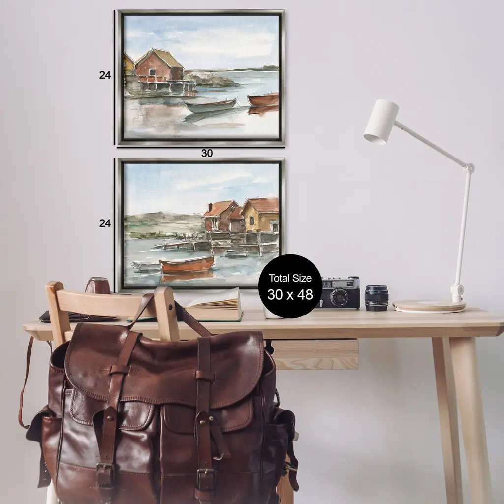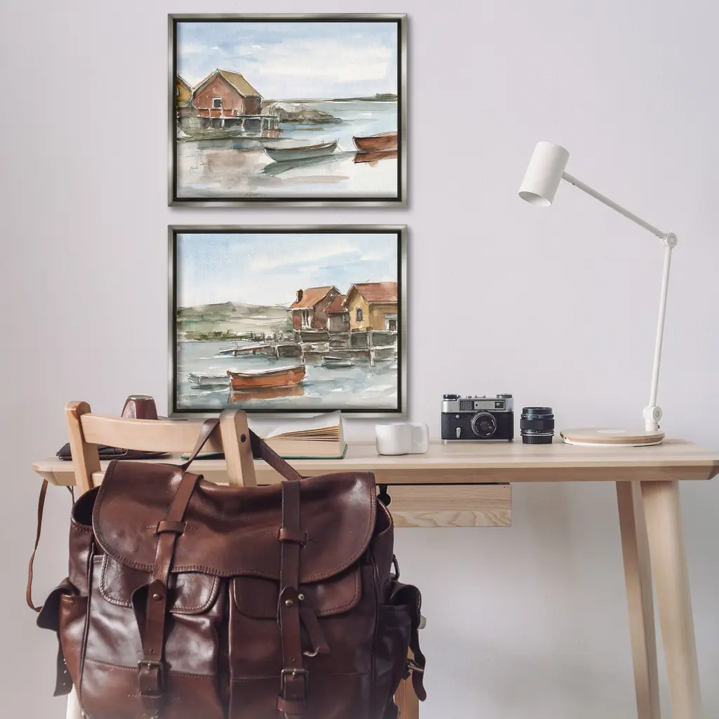 Elevate your home or office to the next level with Stupell Framed Floating Canvas Wall Art. Our premium hand-stretched canvas is mounted securely into a sturdy lightweight frame. The museum-style gap between the wrapped canvas and the box frame gives the illusion of floating artwork. Stupell Wall Art is made in the USA.Features: Dimensions: 2 Piece Set, Each Frame is 17 x 1.7 x 21Two Piece Floater Framed Canvas are available as 21"x17" or 31"x24" Panels. All Floater Frame Products have a 1.7" Depth.Wall Art is Ready to Hang with Hardware Free Hanging. No Installation required. For Easy Set Up Lean or Layer Artwork on Shelf or Against Wall. Artwork is Permently Fixed into the Frame.Our elevated 1.7" Thick Floating Frame is the perfect complement to our canvas style Wall Art. We use only the highest quality inks in house with industry leading printing solutions. Canvas is hand stretched over a durable wood foundation and then mounted securly into a Modern Box Frame. Made in the USA.Artwork Relates To: Building, Hut, Boat, House, Shack, Water, Waterfront, Dinghy, Watercraft, Beach, Lake, Ocean, Coastal, NauticalDesign by Ethan Harper