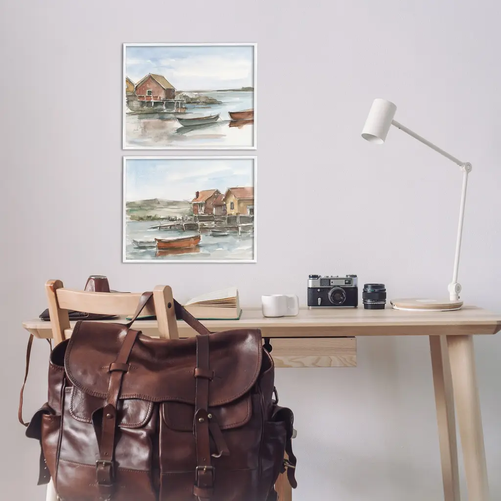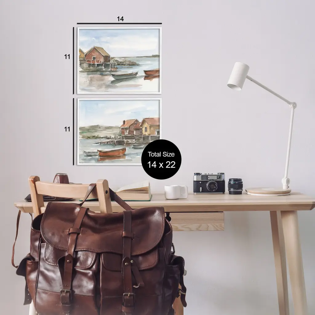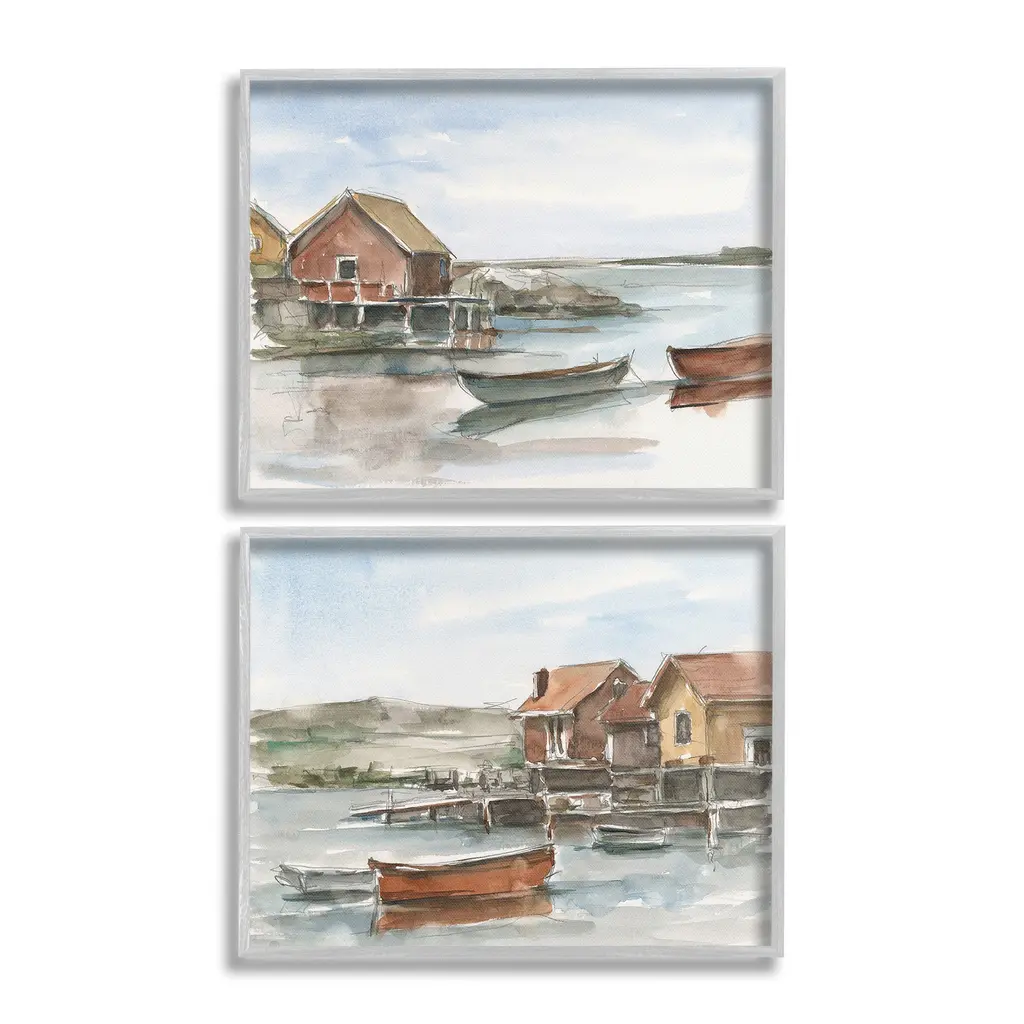 Fill any space in your home or office with our Framed Wall Art Sets. Our framed artwork is securely mounted into a 1.5-inch thick wood grain frame and ready to hang. Frames are available in three alluring styles: black, gray farmhouse and white. Stupell Wall Art is made in the USA.Features: Dimensions: 2 Piece Set, Each Panel is 14 x 1.5 x 11 FramedTwo Piece Framed Giclee Sets are available as 14"x11", 20"x16" or 30"x24" Panels. All Framed Giclee Products have a 1.5" Depth.Wall Art is Ready to Hang with Hardware Free Hanging. No installation required. For Easy Set Up Lean or Layer Artwork on Shelf or Against Wall.Curated Wall Art Sets make it easy for you complete the theme for any room. Our giclée prints are carefully mounted on a durable MDF backing, and then perfectly finished in a 1.5 inch thick woodgrain frame. Mounted frame colors include black, gray farmhouse and white. Made In USA.Artwork Relates To: Building, Hut, Boat, House, Shack, Water, Waterfront, Dinghy, Watercraft, Beach, Lake, Ocean, Coastal, NauticalDesign by Ethan Harper