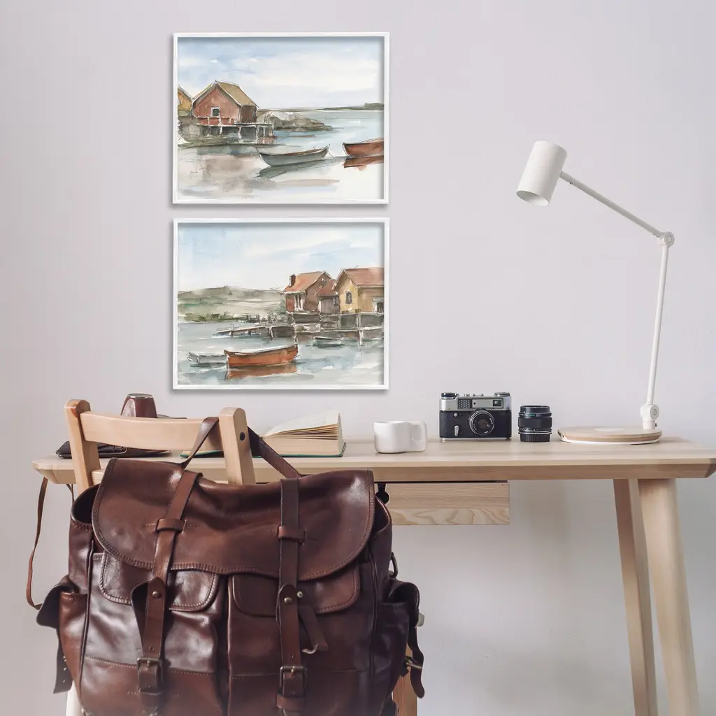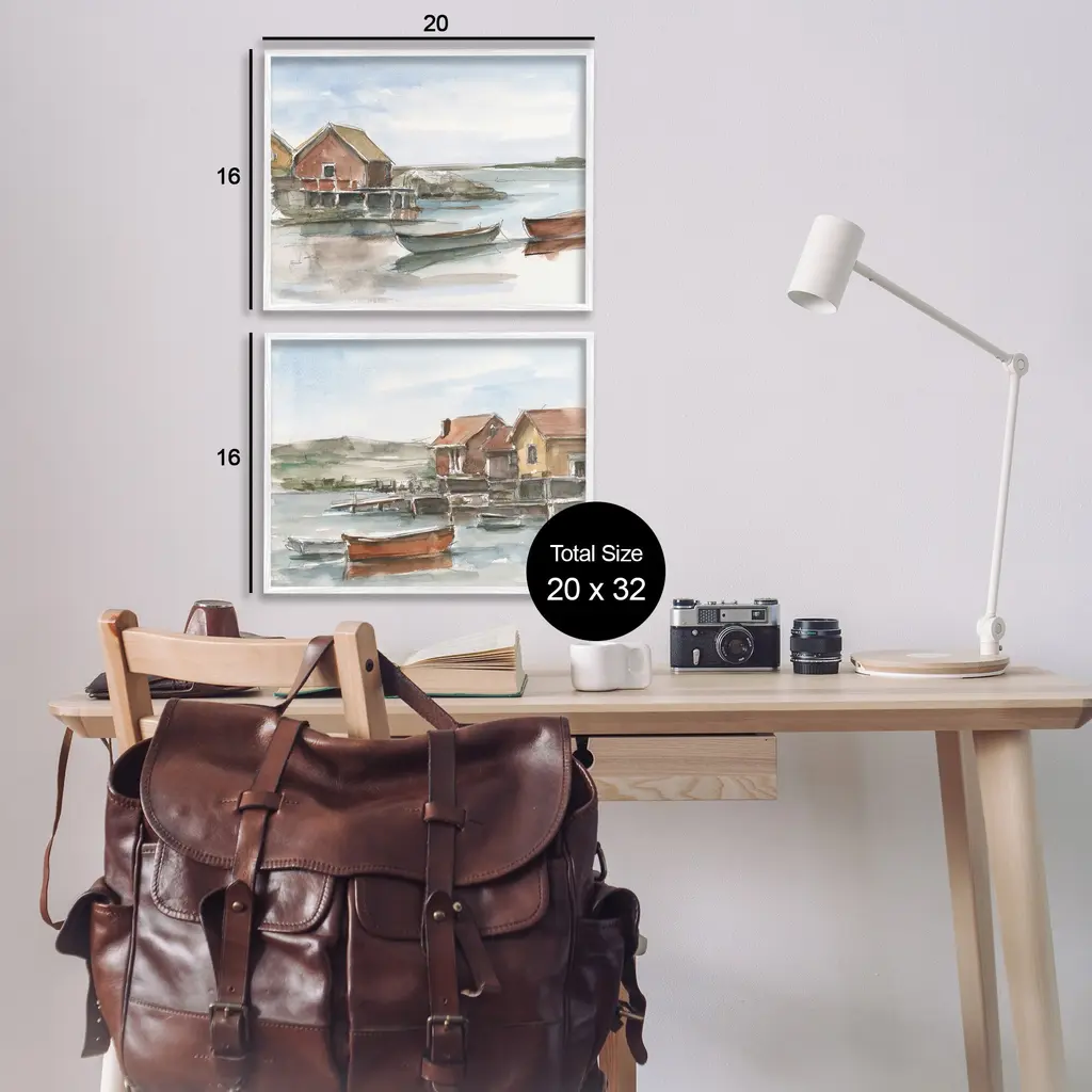 Fill any space in your home or office with our Framed Wall Art Sets. Our framed artwork is securely mounted into a 1.5-inch thick wood grain frame and ready to hang. Frames are available in three alluring styles: black, gray farmhouse and white. Stupell Wall Art is made in the USA.Features: Dimensions: 2 Piece Set, Each Panel is 14 x 1.5 x 11 FramedTwo Piece Framed Giclee Sets are available as 14"x11", 20"x16" or 30"x24" Panels. All Framed Giclee Products have a 1.5" Depth.Wall Art is Ready to Hang with Hardware Free Hanging. No installation required. For Easy Set Up Lean or Layer Artwork on Shelf or Against Wall.Curated Wall Art Sets make it easy for you complete the theme for any room. Our giclée prints are carefully mounted on a durable MDF backing, and then perfectly finished in a 1.5 inch thick woodgrain frame. Mounted frame colors include black, gray farmhouse and white. Made In USA.Artwork Relates To: Building, Hut, Boat, House, Shack, Water, Waterfront, Dinghy, Watercraft, Beach, Lake, Ocean, Coastal, NauticalDesign by Ethan Harper