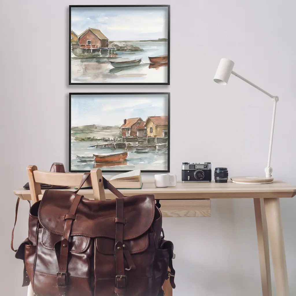 Fill any space in your home or office with our Framed Wall Art Sets. Our framed artwork is securely mounted into a 1.5-inch thick wood grain frame and ready to hang. Frames are available in three alluring styles: black, gray farmhouse and white. Stupell Wall Art is made in the USA.Features: Dimensions: 2 Piece Set, Each Panel is 14 x 1.5 x 11 FramedTwo Piece Framed Giclee Sets are available as 14"x11", 20"x16" or 30"x24" Panels. All Framed Giclee Products have a 1.5" Depth.Wall Art is Ready to Hang with Hardware Free Hanging. No installation required. For Easy Set Up Lean or Layer Artwork on Shelf or Against Wall.Curated Wall Art Sets make it easy for you complete the theme for any room. Our giclée prints are carefully mounted on a durable MDF backing, and then perfectly finished in a 1.5 inch thick woodgrain frame. Mounted frame colors include black, gray farmhouse and white. Made In USA.Artwork Relates To: Building, Hut, Boat, House, Shack, Water, Waterfront, Dinghy, Watercraft, Beach, Lake, Ocean, Coastal, NauticalDesign by Ethan Harper