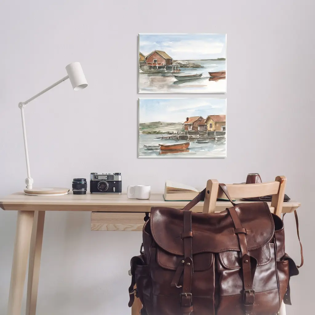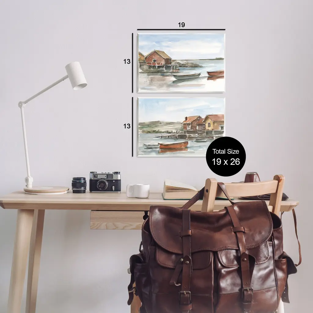 Fill any space with Stupell Wall Art Sets. Our wall plaques start as high-quality lithograph prints mounted on durable 0.5-inch thick MDF wood. Each piece is hand finished and comes with a fresh layer of white foil on the sides to give it a crisp, clean look. Plaques arrive ready to hang without installation and come with removable plastic corners to keep them from damage in transit. Stupell Wall Art is made in the USA.Features: Dimensions: 2 Piece Set, Each Panel is 15 x 0.5 x 10 InchesTwo Piece Wall Plaque Sets are available as 15"x10" or 19"x13" Panels. All Wall Art Plaques have a 0.5" Depth.Wall Art is Ready to Hang with Hardware Free Hanging. No installation required. For Easy Set Up Lean or Layer Artwork on Shelf or Against Wall.All of our wall plaques start off as high quality lithograph prints that are then mounted on durable 0.5 inch thick MDF wood. Each piece is hand finished and comes with a fresh layer of foil on the sides to give it a crisp clean look. Made In USA.Artwork Relates To: Building, Hut, Boat, House, Shack, Water, Waterfront, Dinghy, Watercraft, Beach, Lake, Ocean, Coastal, NauticalDesign by Ethan Harper